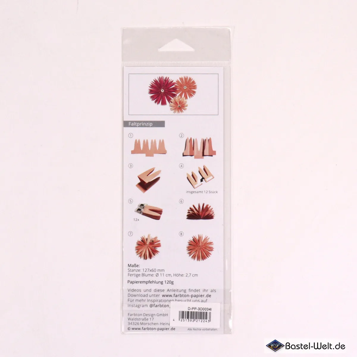 Durchmesser der fertigen Faltblume ca. 11cm / Tiefe: 2,5 cm