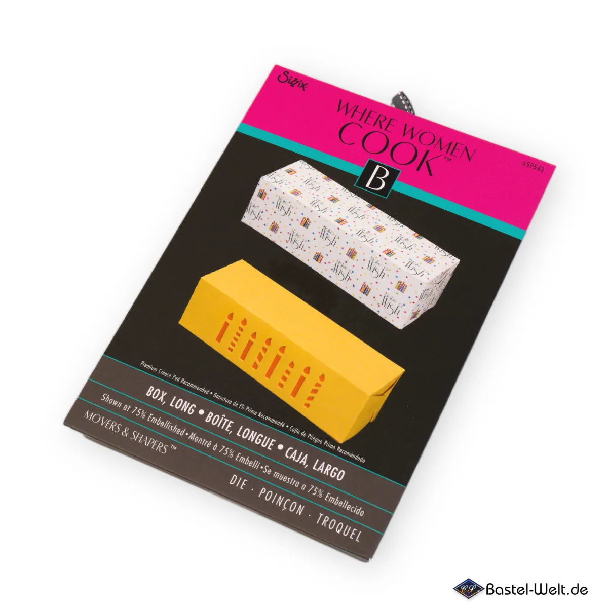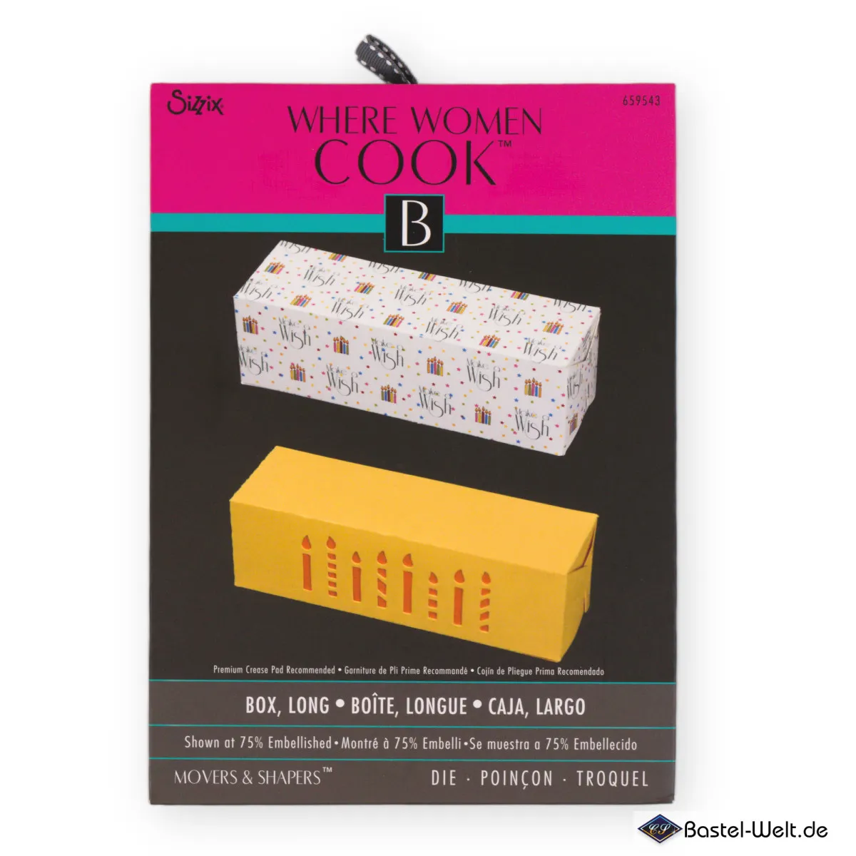 Für den Ausschnitt der abgebildeten Kerzen auf der Basisschachtel wird zusätzliche Sizzix Stanze Movers and Shapers Magnetic Die - Candles (659541) benötigt.