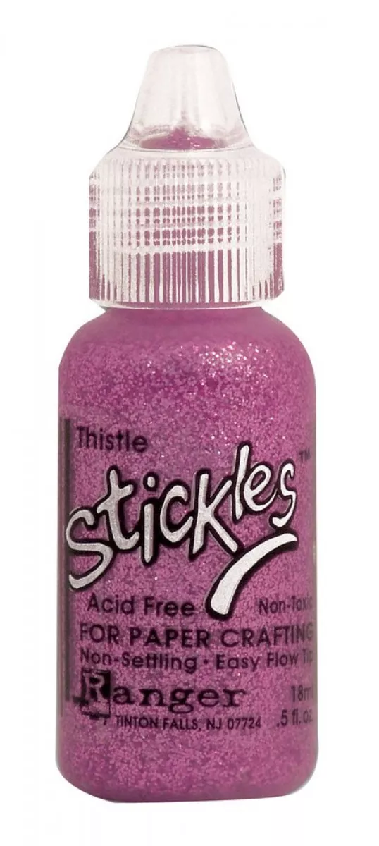 Mit Stickles Glitterglue von Ranger kannst du alle Arten von Bastelprojekten dekorieren, wie z.B. Karten, Scrapbookseiten, aber auch Kerzen, Wohnaccessoires aus Holz und Gläser. Mit der praktischen feinen Öffnung oben an der Flasche kannst Du Linien ziehen, kleine Punkte setzen, zeichnen und kolorieren. Der Vorteil gegenüber losem Glitter ist, dass Du bei Stickles keinen zusätzlichen Kleber benötigst, um etwas mit Glitzer zu dekorieren. Im Gegensatz zu anderen Glitterklebern, sind bei diesem die Glitzerpartikel in der entsprechenden Farbe eingefärbt, der Klebstoff ist farblos.