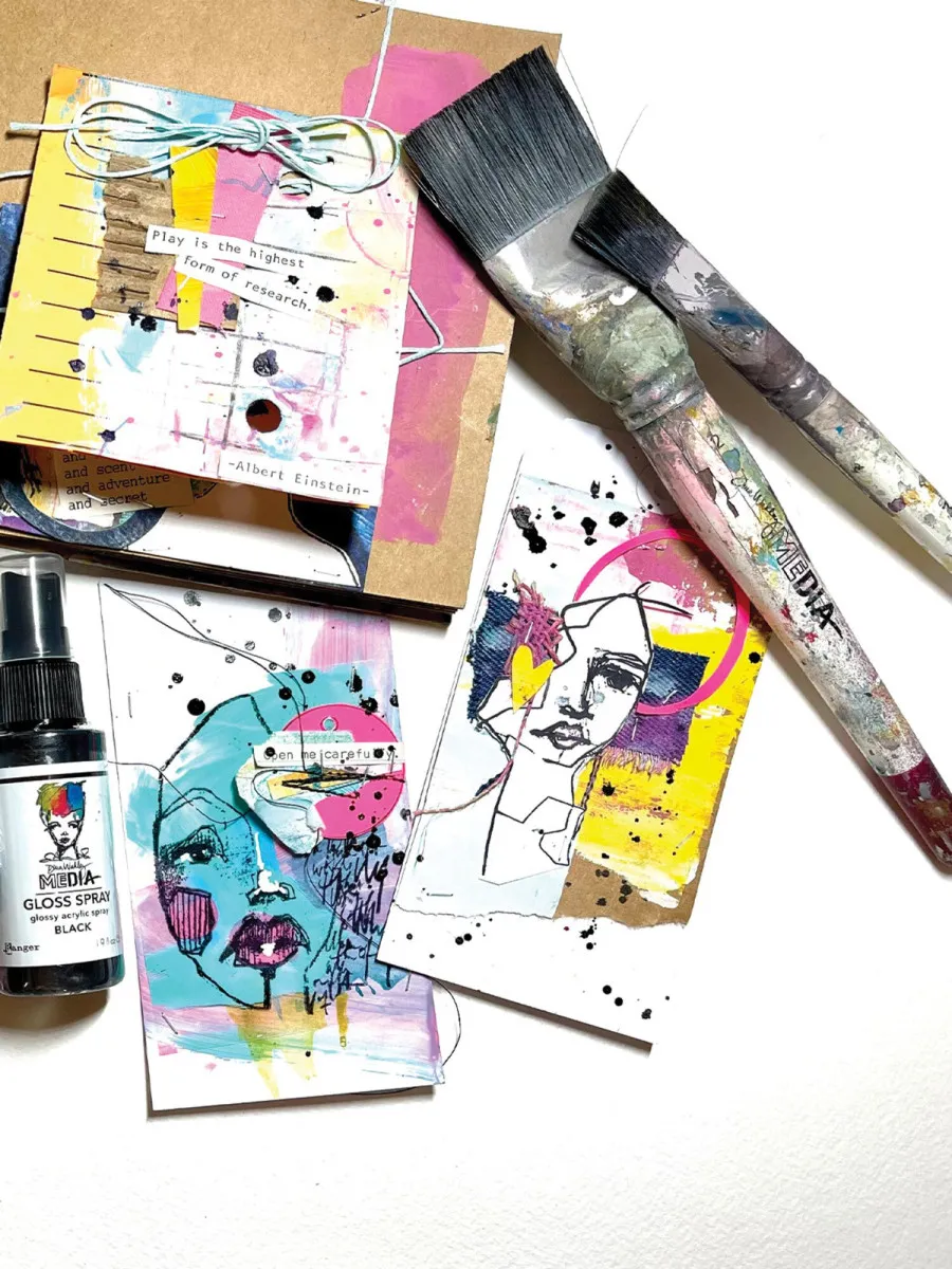 Dieses Dina Wakley Media Gloss Spray ist ein undurchsichtiges Acrylspray, der zu einem glänzenden Finish trocknet. Sprühe ihn in Media Journals, auf Chipboardformen, Media Board und andere poröse Oberflächen. Die Glanzsprays sind im feuchten Zustand wasserlöslich und im trockenen Zustand dauerhaft.