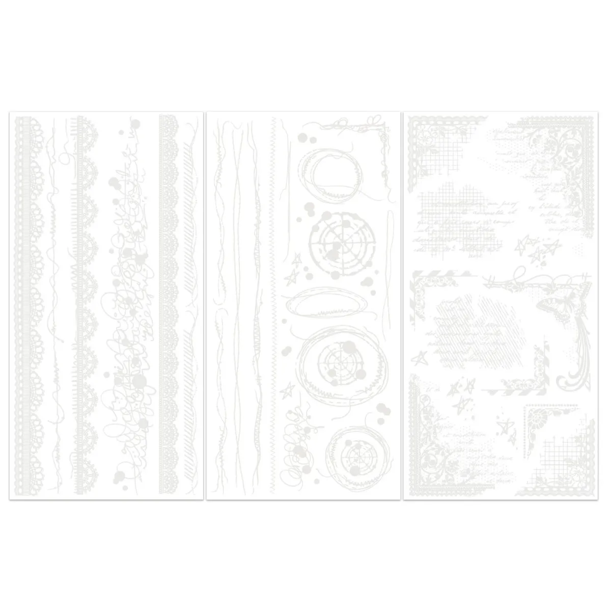 Verleihe deinen Mixed-Media-Projekten ein professionelles Finish mit dem Irresistible Edges Rub-On Transfer Set. Diese Sammlung aus klaren, reinweißen Designs ist ein vielseitiges Must-have für jede Bastelausrüstung und bietet professionelle Präzision – ganz ohne Hitze oder klebrige Klebstoffe.