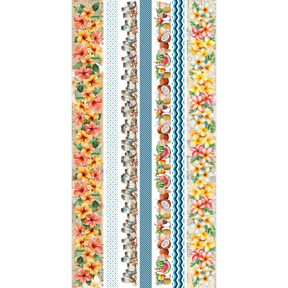 Bring den sonnigen Strand in deine Bastelprojekte mit unseren Beach Vibes Washi Stickern! Jede Packung enthält 30,5 cm lange Streifen voller heller, sommerlicher Designs, die dich sofort in einen entspannten Urlaub entführen. Außerdem sind ausgestanzte Wellenstücke enthalten, die deinen Projekten einen zusätzlichen Hauch von Meereszauber verleihen. Perfekt für Planer, Scrapbooks, Karten und mehr!