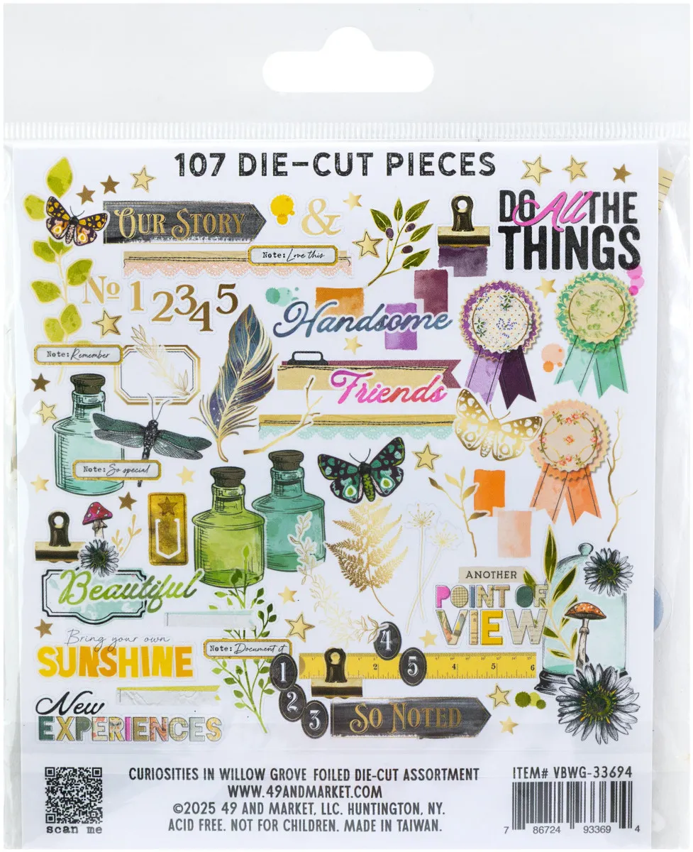 Tauche ein in eine Welt voller Wunder mit dem Vicki Boutin Curiosities in Willow Grove Foiled Die-cut Assortment Pack! Dieses wunderschöne Set bietet eine zauberhafte Vielfalt an ausgestanzten Formen, perfekt, um deinen Scrapbooking-, Karten- und Papierprojekten einen Hauch Magie zu verleihen.