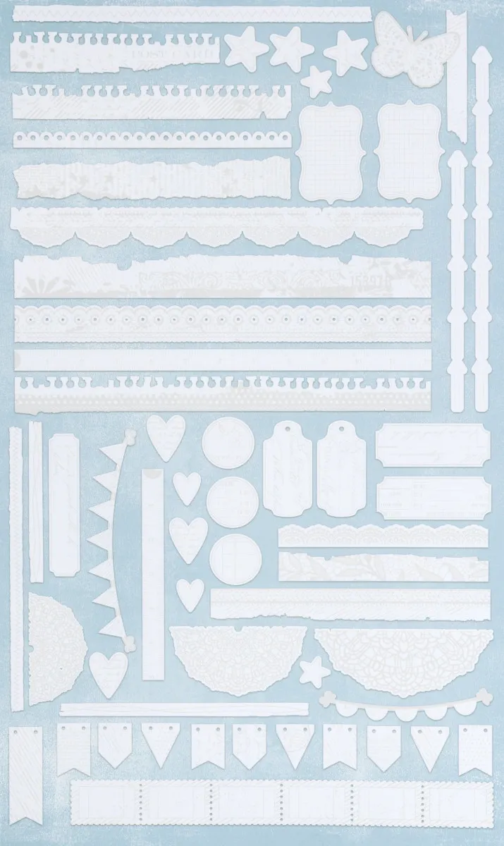 Entdecke verborgene Kreativität in deinen Papierprojekten mit unseren Irresistible Die-Cut Borders. Diese Elemente sind nicht nur dekorative Kanten – sie sind ein Spielplatz für Farbe und Struktur. Jede Bordüre verfügt über eine spezielle Resist-Beschichtung: ein klares, geprägtes Muster, das unsichtbar bleibt, bis du es mit Farbe zum Leben erweckst.