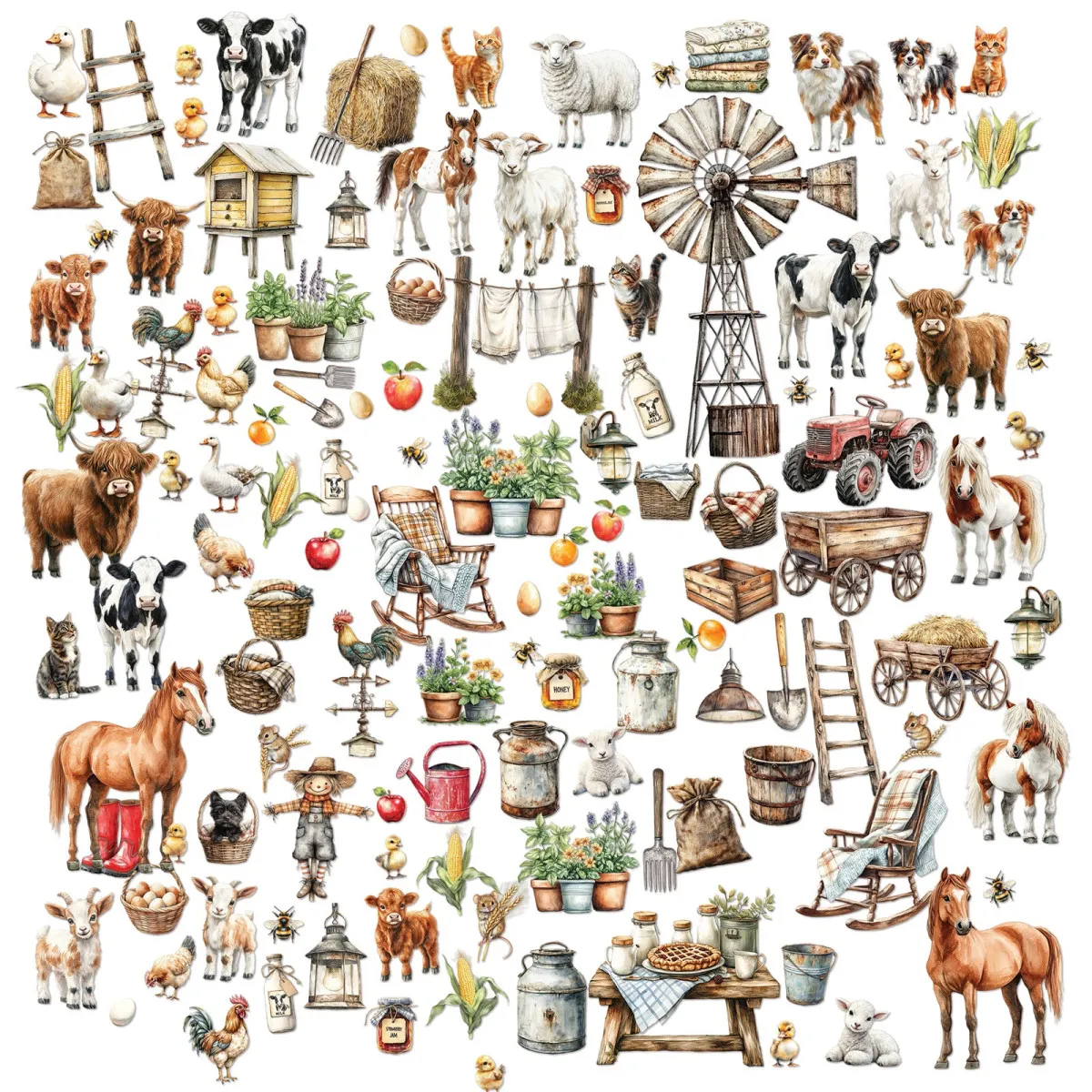 Verziere deine Projekte mit liebevoll detaillierten Laserausschnitten, darunter eine niedliche Tierwelt, eine imposante Windmühle, frische Pflanzen und klassische Bauernhof-Motive wie eine schaukelnde Schubkarre, einen treuen Traktor und eine elegante Wetterfahne. Eine perfekte Möglichkeit, jedem deiner Werke das gemütliche Flair eines Bauernhofs zu verleihen.
