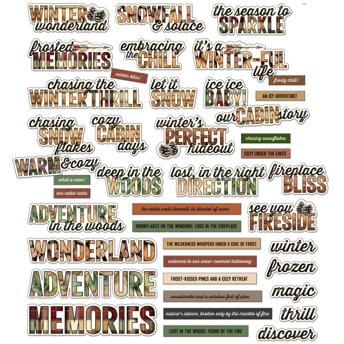 Die große Natur: Feiere die Landschaft mit Phrasen wie „Winter Wonderland“, „Deep in the Woods“ und „Chasing the Winter Thrill“.