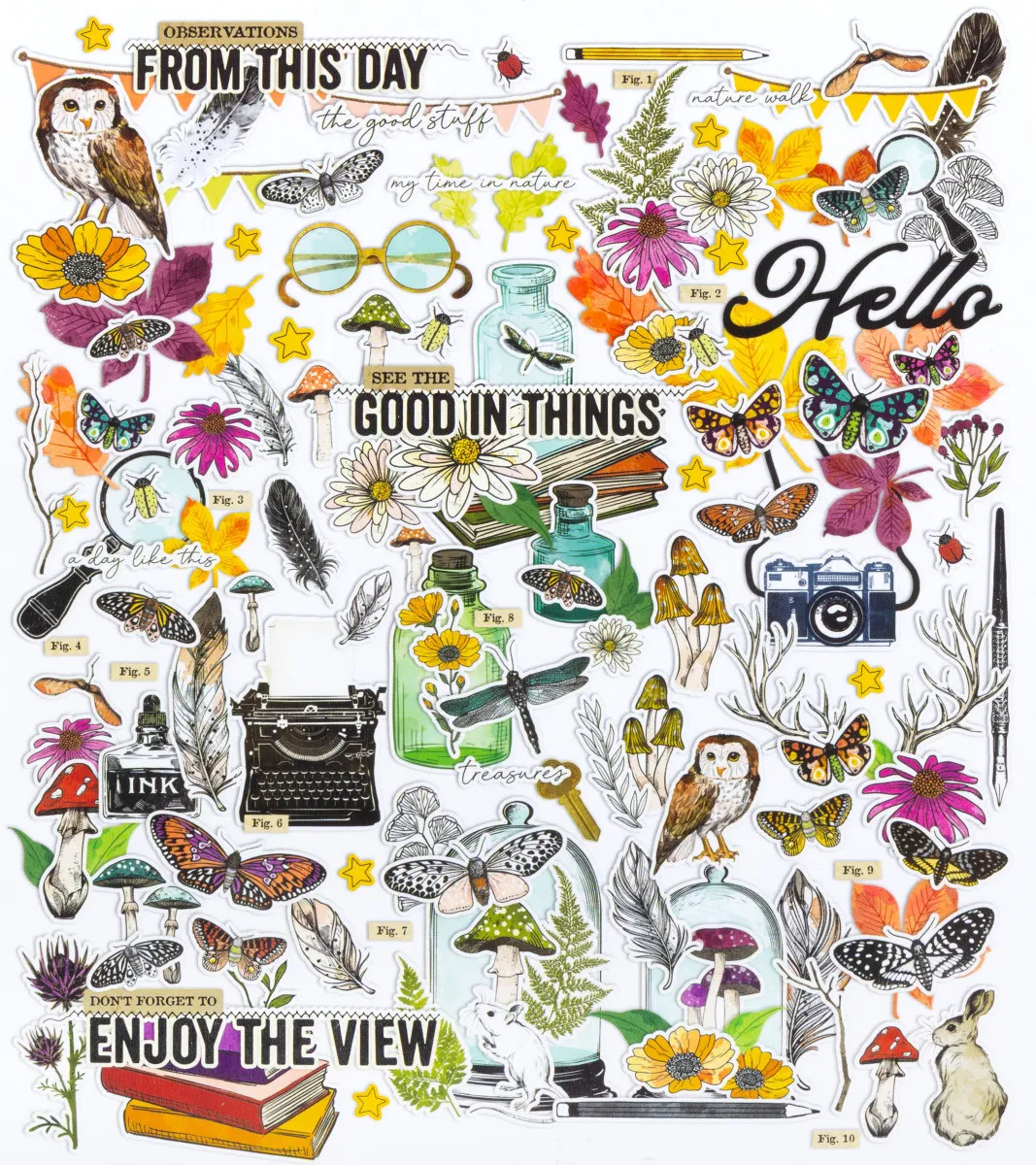 Dieses fesselnde Set enthält eine Mischung aus ausgestanzten Elementen, die deine Kreativität inspirieren. Entdecke farbenfrohe Motten und klassische Glaskuppeln, dazu erdige Pilze und wunderschön detaillierte Blätter. Außerdem enthält das Set eine Vielzahl von Titeln, die dir helfen, deine Geschichte zu erzählen.