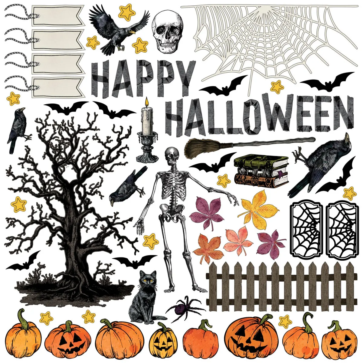 ein Stickerbogen aus Cardstock, vollgepackt mit lustigen und festlichen Halloween-Elementen