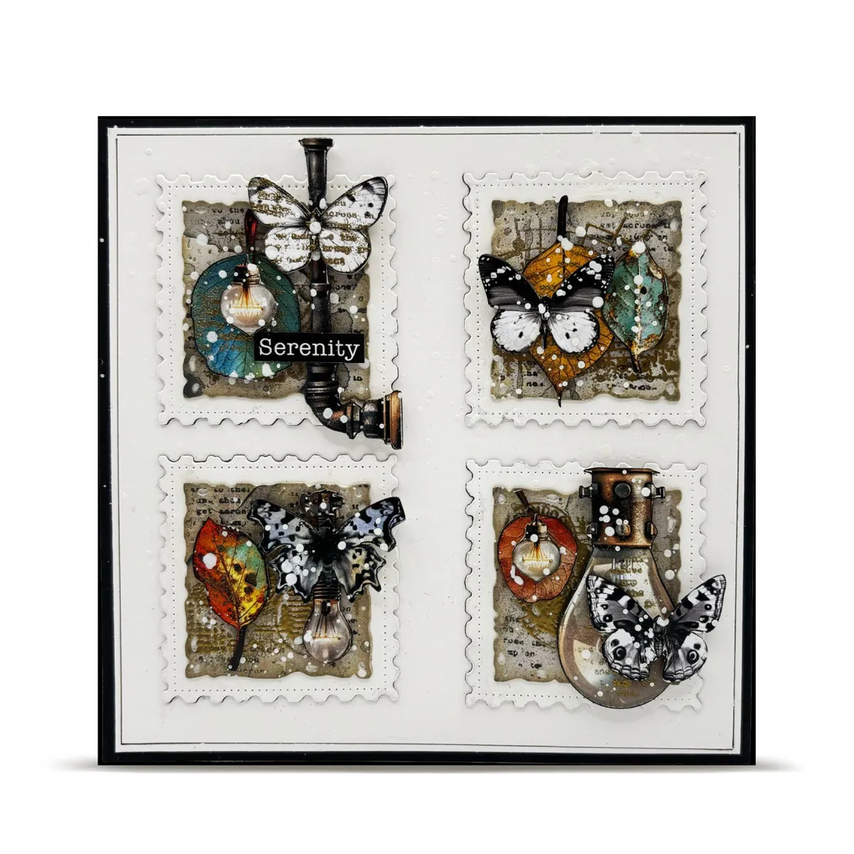 Die Kollektion enthält 2 Ephemera Packs, 4 Paper Packs und 4 Rub-On Packs, alle in der monochromen Farbpalette: