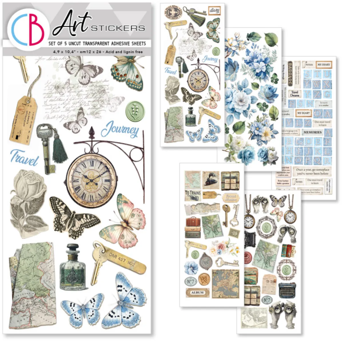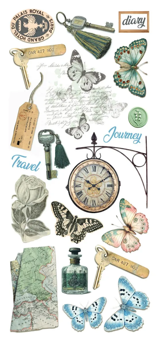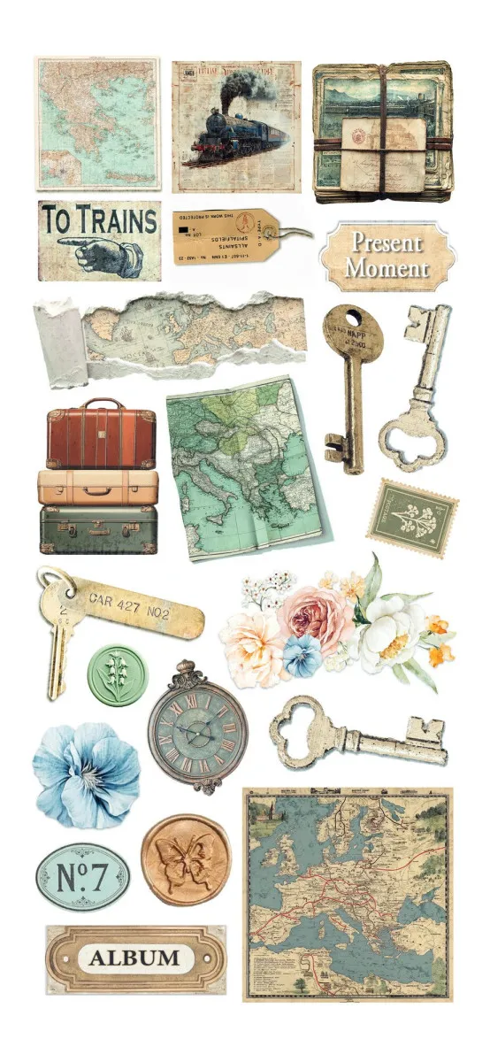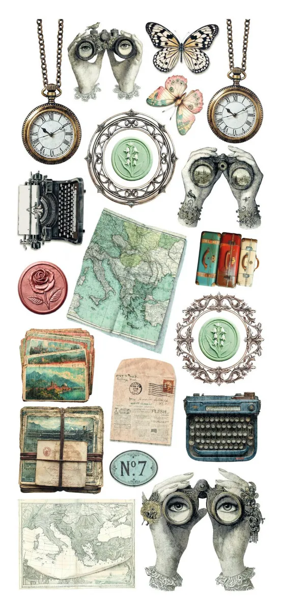 Über 30 Motive auf ungeschnittenen, transparenten Klebebögen – perfekt für Junk Journals, Collagen, Scrapbooking, Karten und andere Papierkunstprojekte.