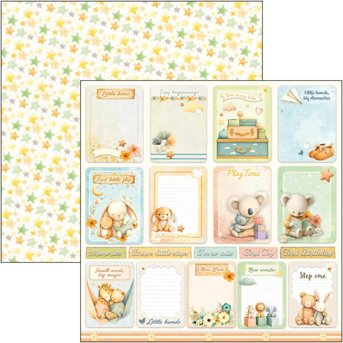 Lunibloom ist ein süßer, farbenfroher Ausflug in die Welt eines Kindes. Sanfte Pastelltöne in Blau, Rosa, Flieder und Gelb machen diese Kollektion perfekt für jedes kleine Wesen. Niedliche Aquarelltiere wie Häschen, Bären und kleine Vögelchen erfüllen die Kollektion mit Wärme und Freude. Jedes Detail wirkt zart und fröhlich und schafft eine liebevolle Atmosphäre für kostbare Kindheitsmomente. Lunibloom hüllt jede Geschichte in Sanftheit, Glück und einen Hauch magischen Pastellzaubers.