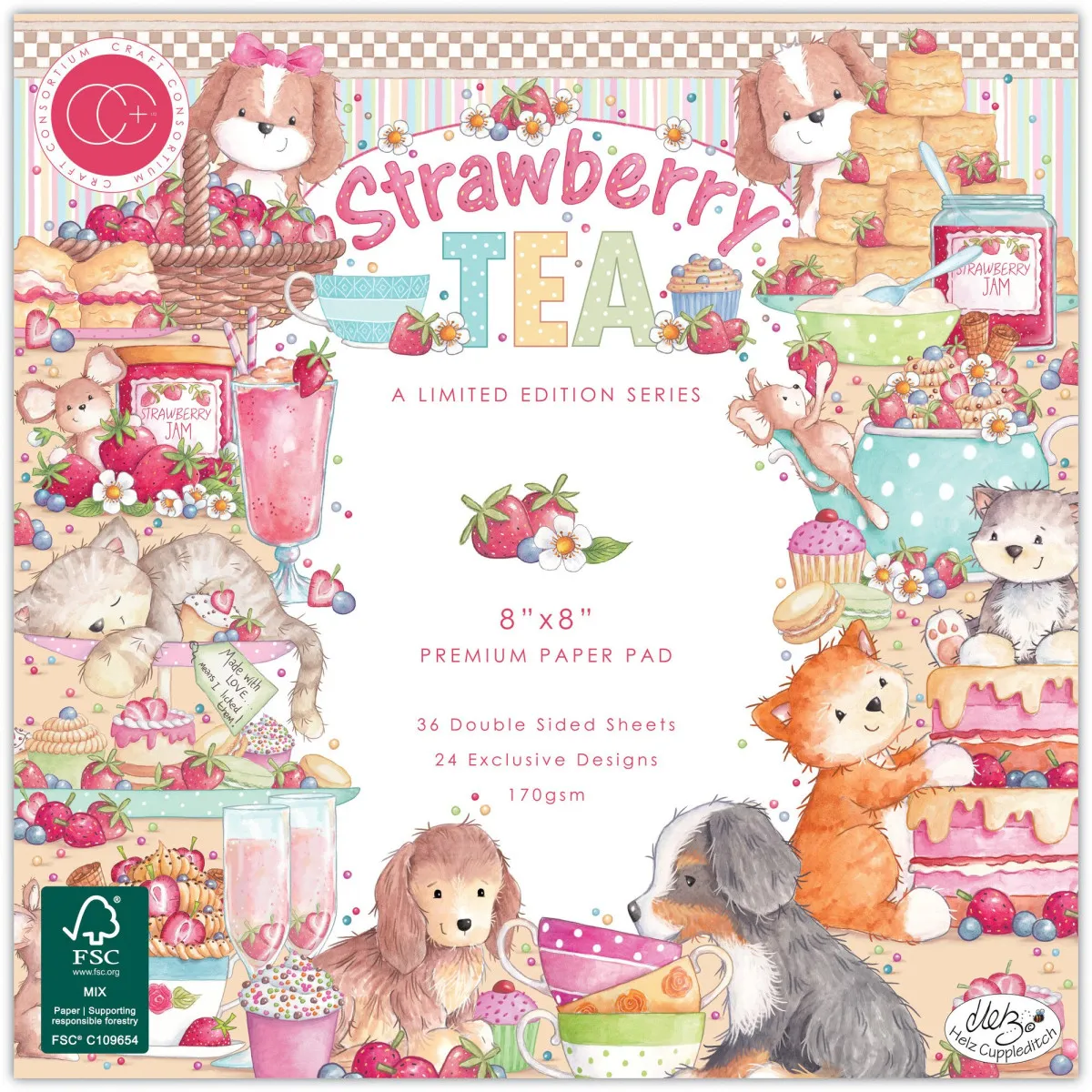Vorstellung von Strawberry Tea: Eine ganz besondere Kollektion, exklusiv entworfen in Zusammenarbeit mit der äußerst talentierten Helz Cuppleditch. Strawberry Tea steht für ein sehr britisches Thema, passend zu den Frühlings- und Sommermonaten, in denen man genüsslich Nachmittagstee mit Kuchen, Scones und Champagner genießt, kombiniert mit den ikonischen und beliebten tierischen Freunden aus Helz’ Haushalt.