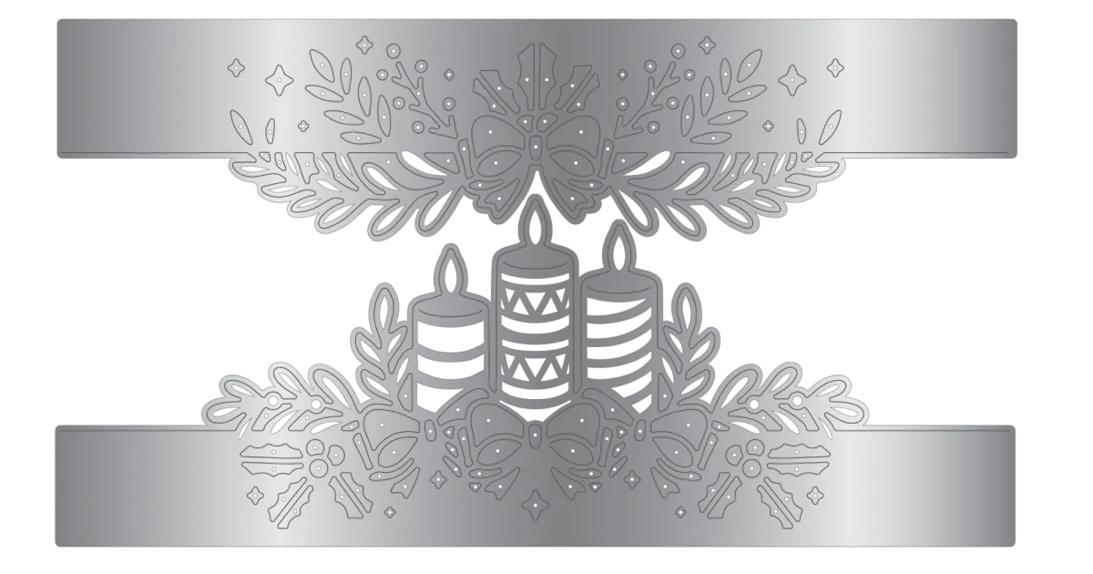 Enthält zwei Metallstanzen, um die Szene mit leuchtenden Kerzen, festlichem Grün und Schleifen zu erstellen