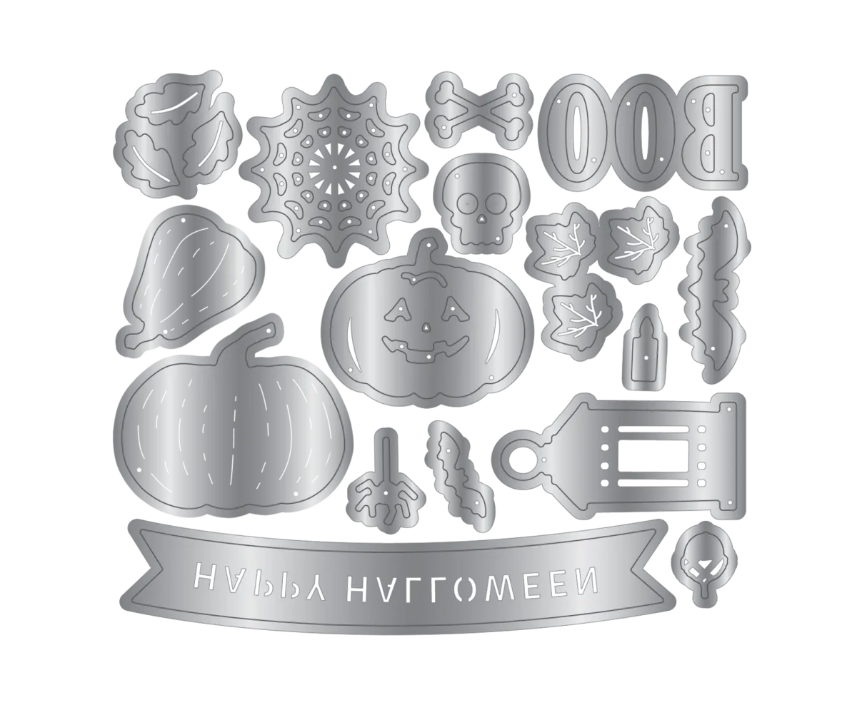 16-teiliger Metallschablonen-Satz mit passenden Halloween- und Herbst-Stempeln