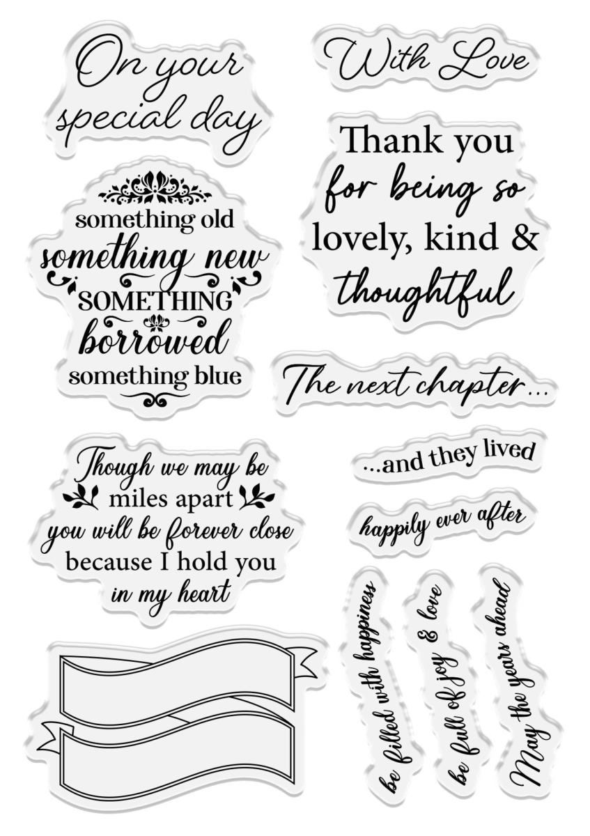 Das Banners & Heartfelt Sentiments Stempel-Set ist der perfekte Partner für deine selbstgemachte Hochzeits- und Event-Papeterie. Als Teil der Sara Signature Antique Lace Kollektion enthält es 11 süße und romantische Spruchstempel sowie einen leeren Banner-Stempel, der passend dimensioniert ist, um einige der Botschaften aufzunehmen. Mit einer Auswahl an kursiven und zeitlosen Schriftarten ist dieses Set ideal für Hochzeitseinladungen, Antwortkarten, Fotoalben, Geschenkanhänger und vieles mehr.