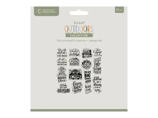 Bringe die Aufregung und das Abenteuer der Wildnis in deine Bastelprojekte mit dem Find Yourself in Nature Clear Acrylic Stempelset aus der The Great Outdoors Kollektion von Crafter's Companion.