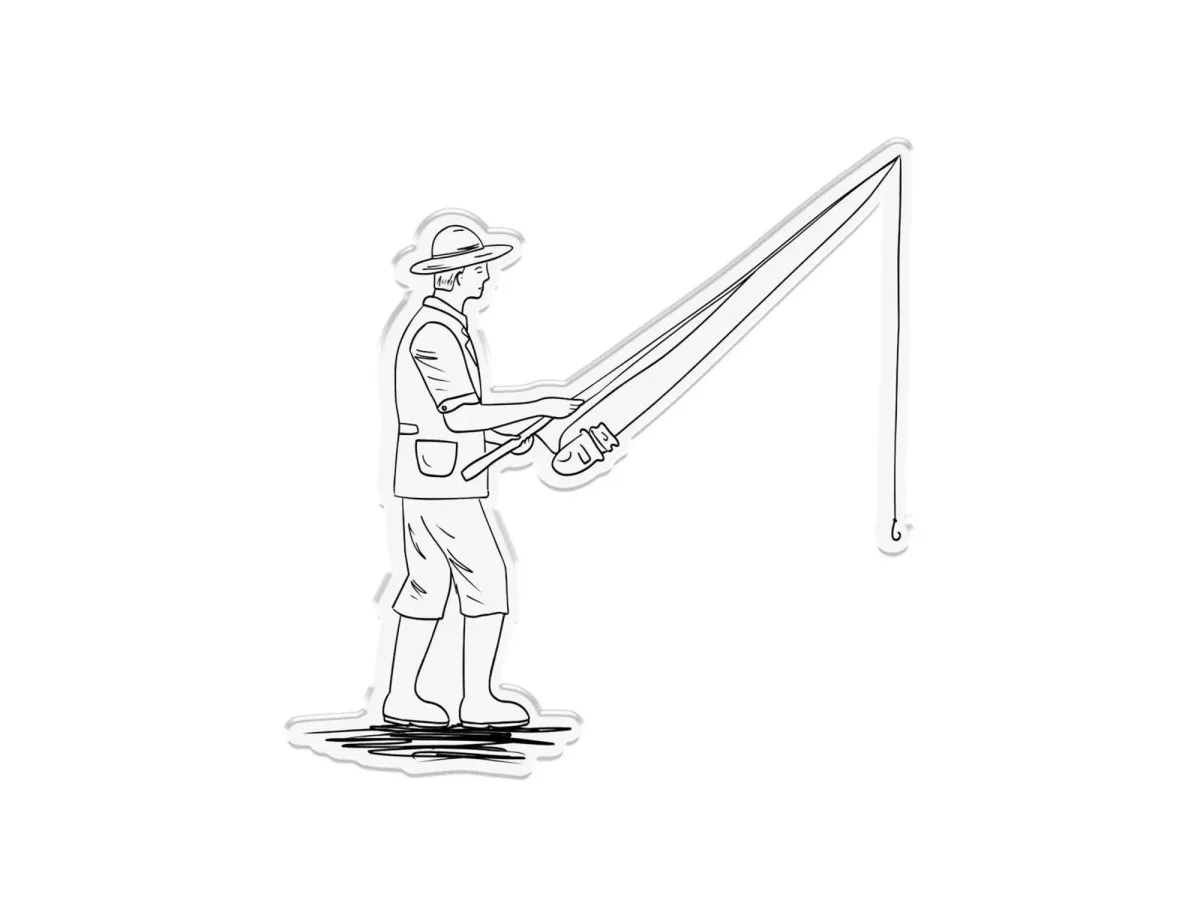 Ein Acrylstempel mit einem Mann in Angelausrüstung