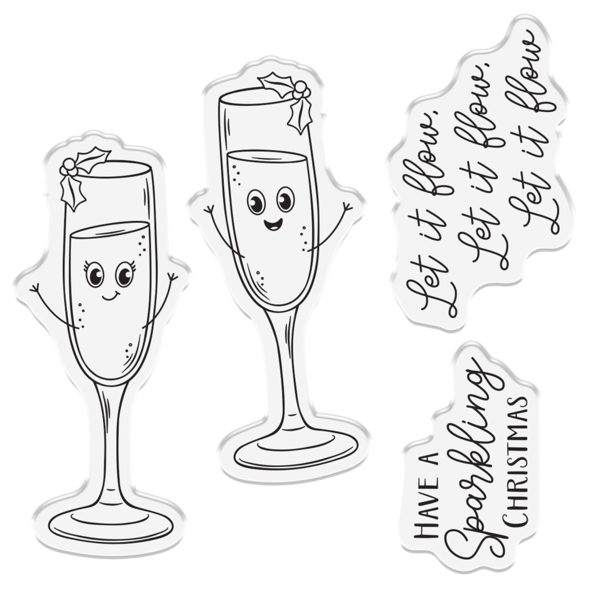 Gönn dir ein Glas festliche Kreativität mit diesem Set aus vier champagnerinspirierten Stempeln – perfekt für selbstgemachte Weihnachtskarten und Dekorationen.