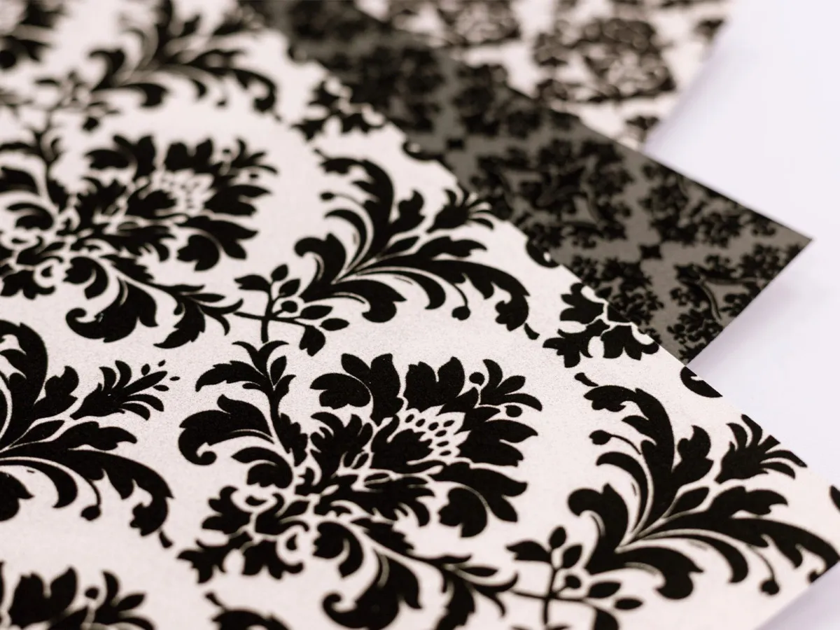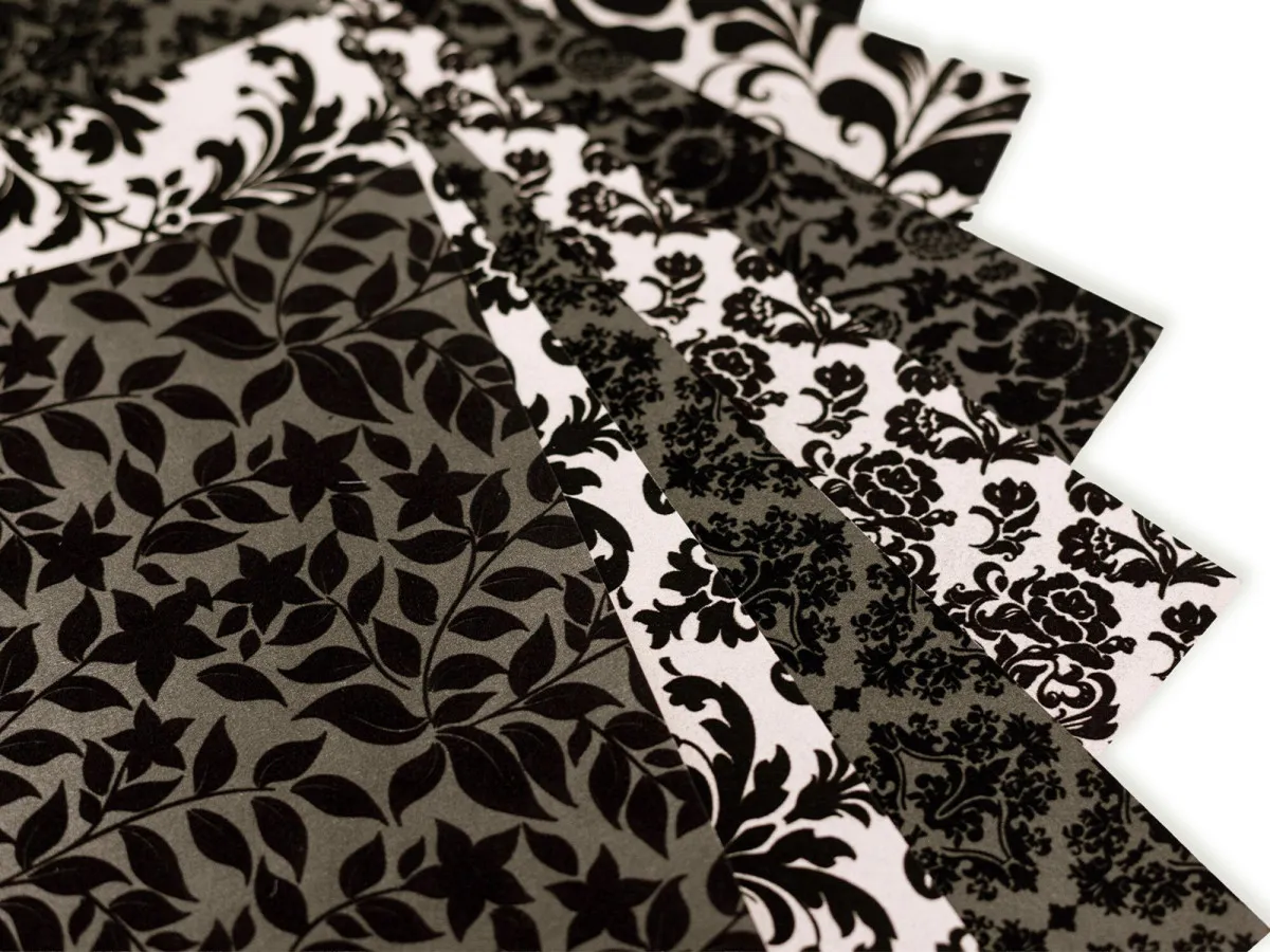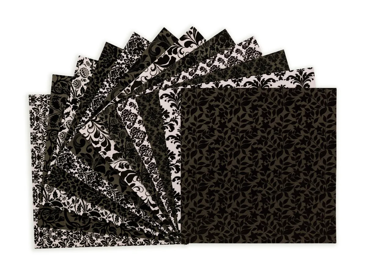 Weiche Textur und ausdrucksstarker Stil: Der 30,5 cm x 30,5 cm Flocked Damask Papierblock verleiht handgefertigten Karten und Geschenken eine besondere Eleganz. Jedes Blatt hat einen Flock-Effekt mit einer weichen und samtigen Textur auf der Oberfläche. 12 Designs präsentieren kunstvolle Muster im traditionellen Stil in einer monochromen Farbpalette aus Schwarz und Creme. Mit insgesamt 24 Blatt gibt es ausreichend Material für schicke Geschenkboxen, Scrapbook-Seiten, Glückwunschkarten, Event-Dekorationen und mehr.
