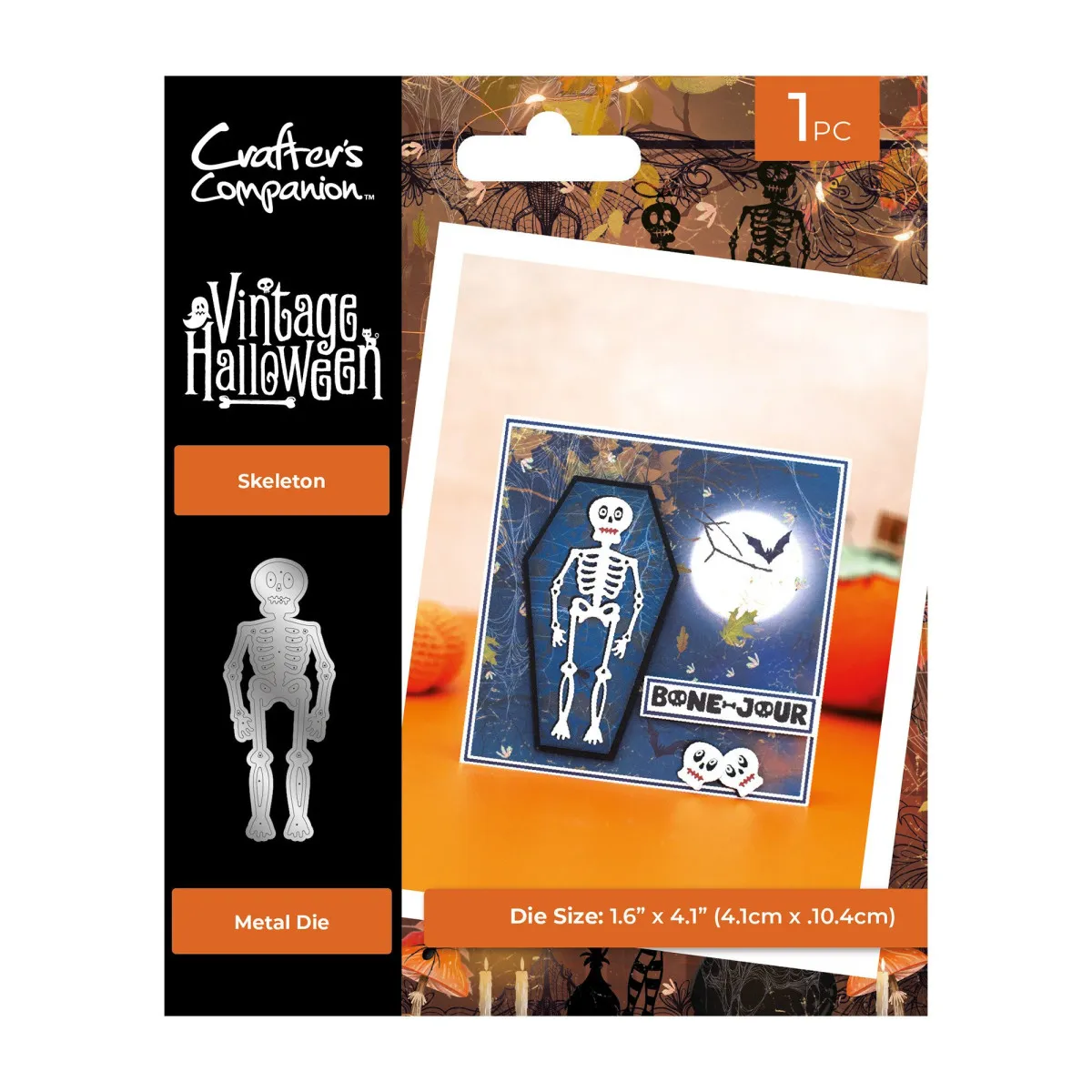 Feiere im gruselig schönen Stil ohne große Schreckmomente mit der Vintage Halloween Kollektion von Crafter's Companion. Die Kollektion umfasst Papier, Stanzformen, Stempel und Schablonen und ist perfekt für die Gestaltung von Party-Einladungen und süßen Geschenkboxen für all deine Halloween-Aktivitäten. Schneide einen detaillierten Umriss eines Skeletts mit der Vintage Halloween Metall-Stanzform „Skeleton“ von Crafter's Companion aus. Verwende die Stanzform, um Dekorationen für selbstgemachte Halloween-Karten, Geschenkkartons, Taschen oder Scrapbook-Seiten auszuschneiden, oder schneide direkt in dein Kartenprojekt oder deine Karte. Die Stanztechnik verleiht den ausgeschnittenen Designs eine Feinheit, die mit Scheren oder einem Bastelmesser nicht erreicht werden könnte.