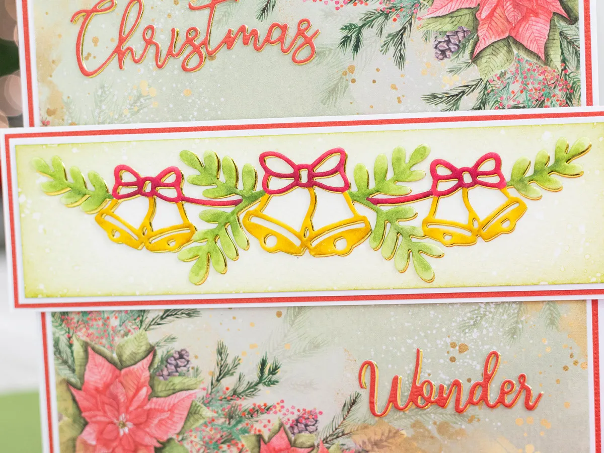 Enthält eine Metallschablone mit Weihnachtsglocken, eingebunden in festliches Blattwerk