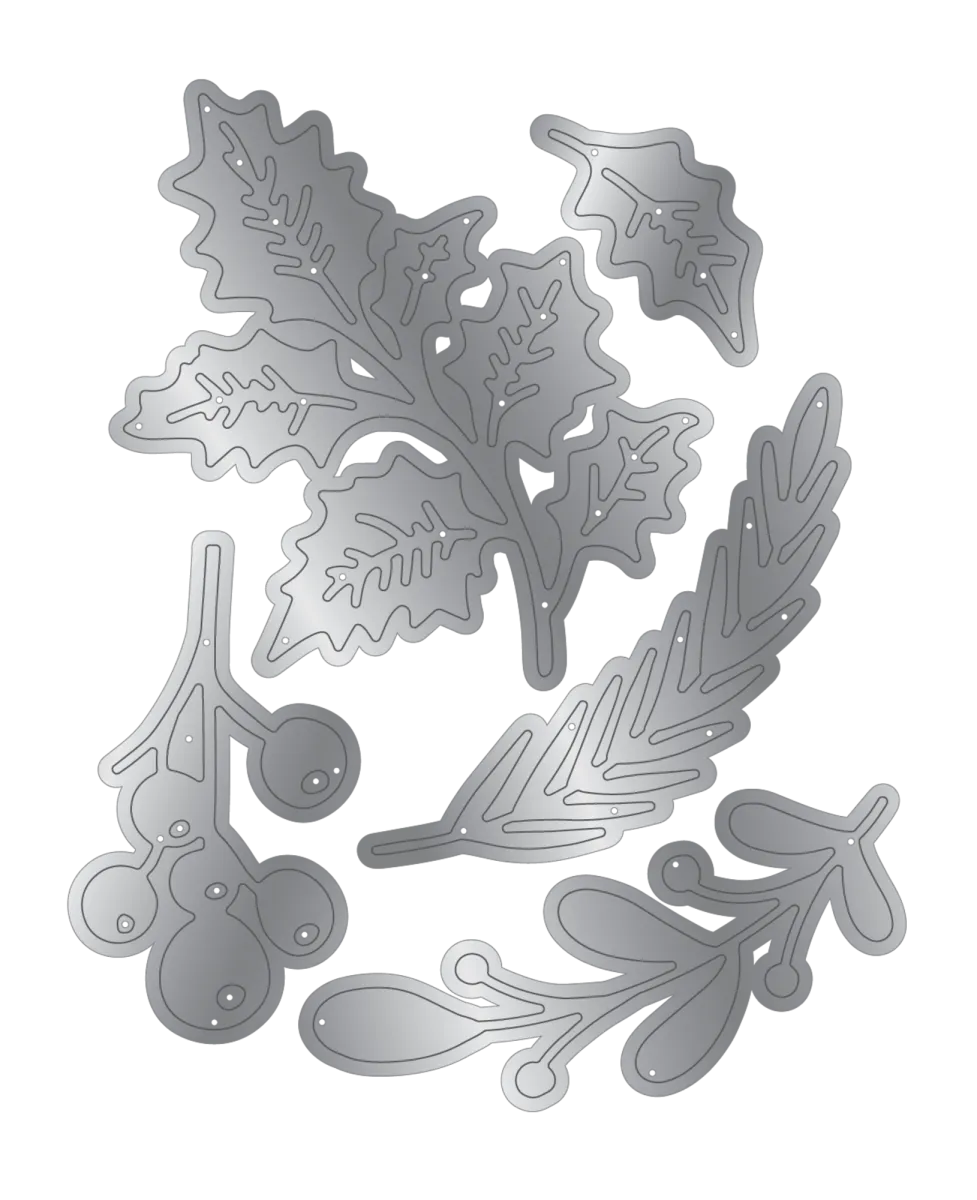 Das Seasonal Foliage Metall-Stanzset aus der Christmas by Candlelight Kollektion von Crafter's Companion ist ideal, um klassische winterliche Blätter und Zweige zu deinen Bastelprojekten hinzuzufügen. Dieses 5-teilige Stanzset enthält Umrisse von Mistelzweigen und Stechpalmen – perfekt für deine nächste selbstgemachte Weihnachtskarte, Dekoration, Geschenkbox und vieles mehr. Das Stanzen ermöglicht eine filigrane Gestaltung von Motiven, wie sie mit Schere oder Bastelmesser nicht möglich wäre. Enthält fünf Metallstanzen mit Weihnachtsmotiven, darunter Mistelzweige und Stechpalmen.