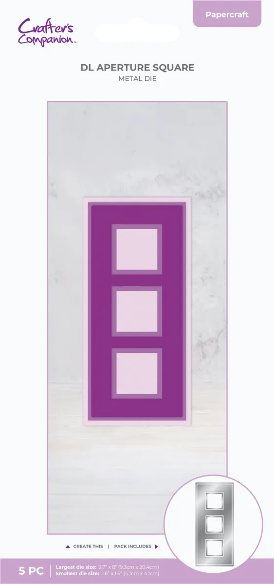 - Passend dimensioniert, um eine Slimline-DL-Kartenvorderseite mit quadratischen Fenstern zu erstellen