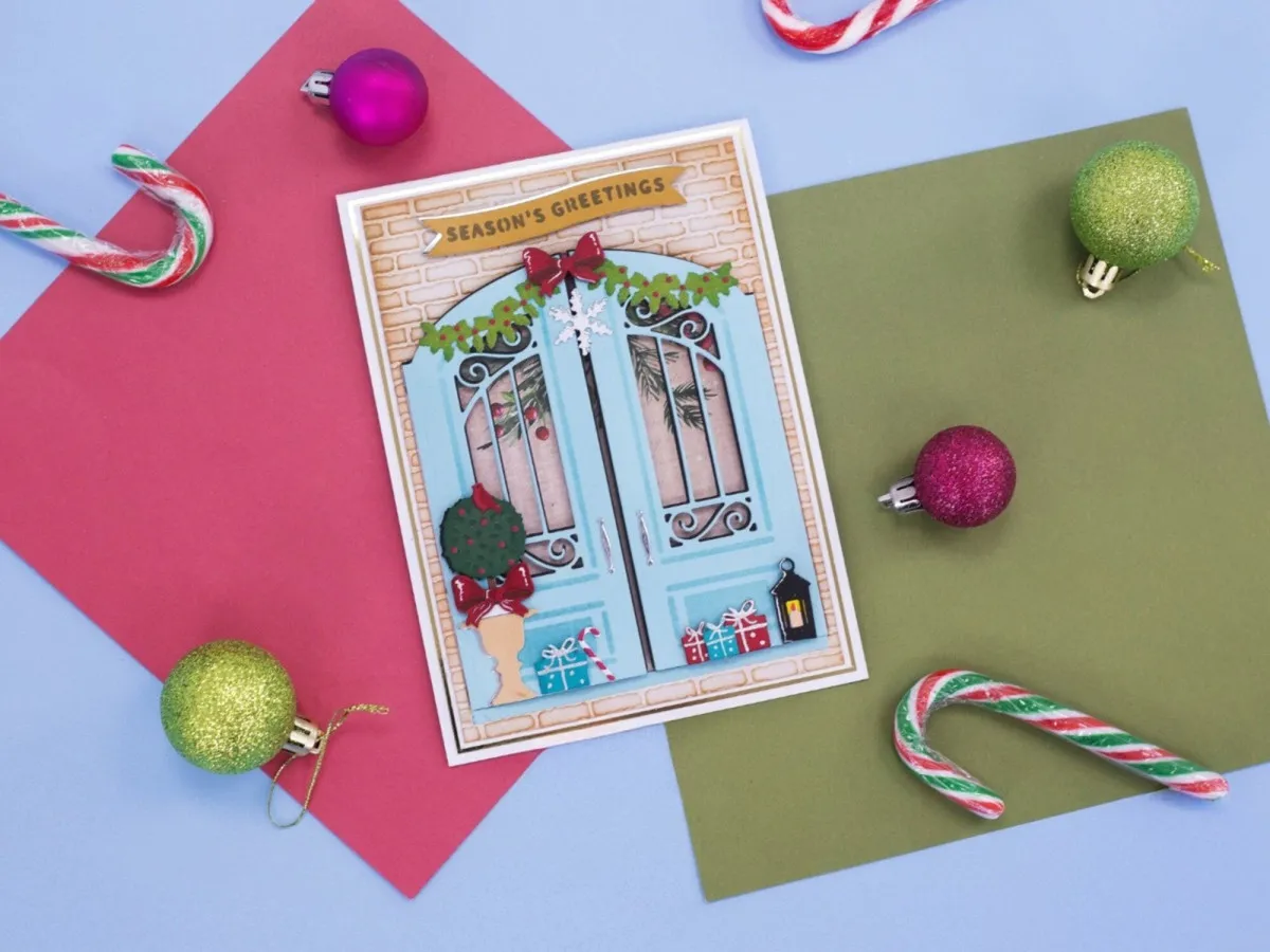 Gestalte eine klassische Tür-Szene in deinen saisonalen Bastelprojekten mit dem Arched Door Stanzschablonen-Set von Crafter's Companion.
