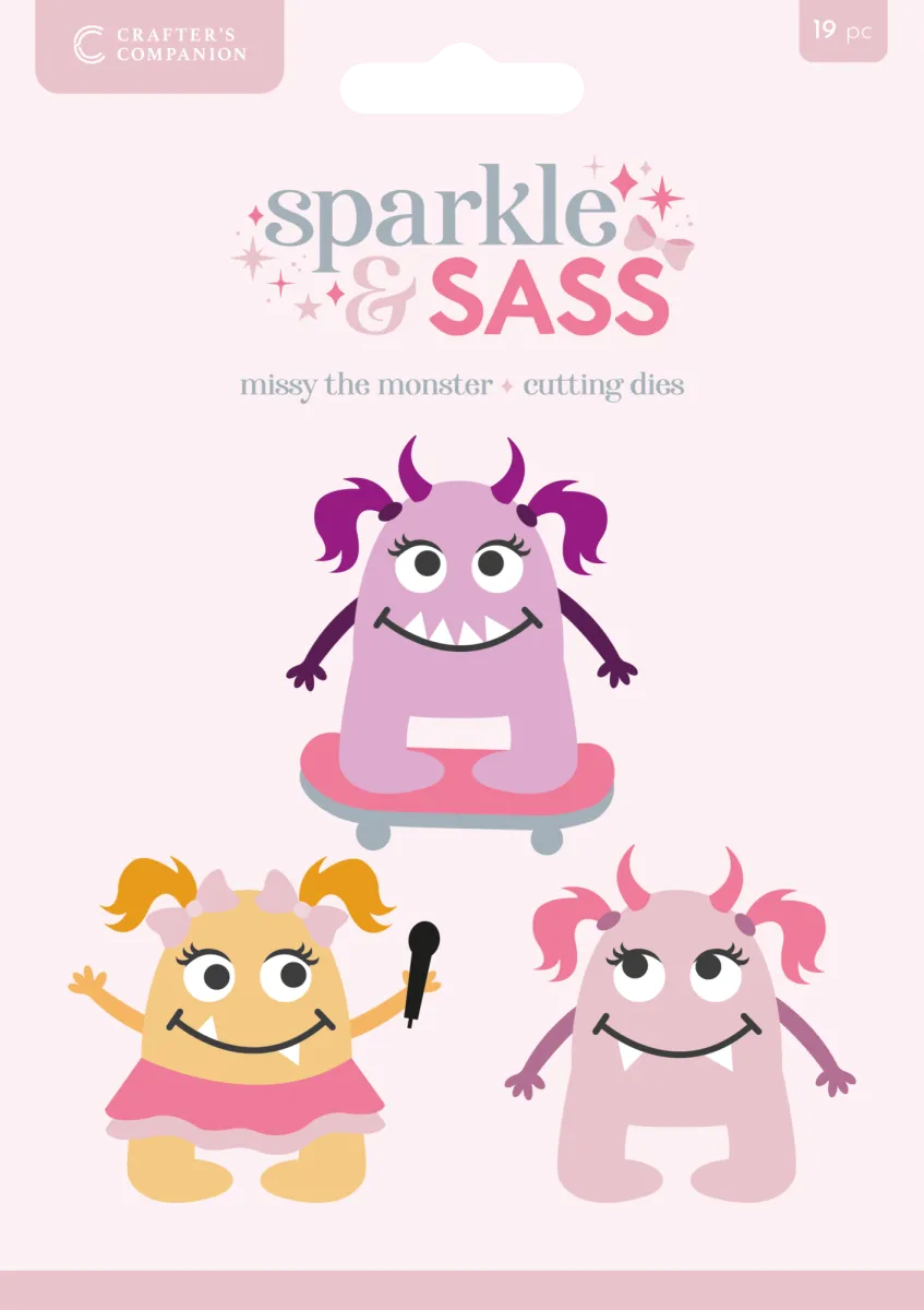 Das 19-teilige Metall-Stanzform-Set ermöglicht dir, das Bild von Missy dem Monster auf dem Skateboard zu gestalten. Größe der Metall-Stanze: 8,4 cm x 10,9 cm. Kompatibel mit den Stanz- und Prägegeräten Mini, Midi, Junior und Gemini II. Teil der Sparkle and Sass Kollektion von Crafter’s Companion.