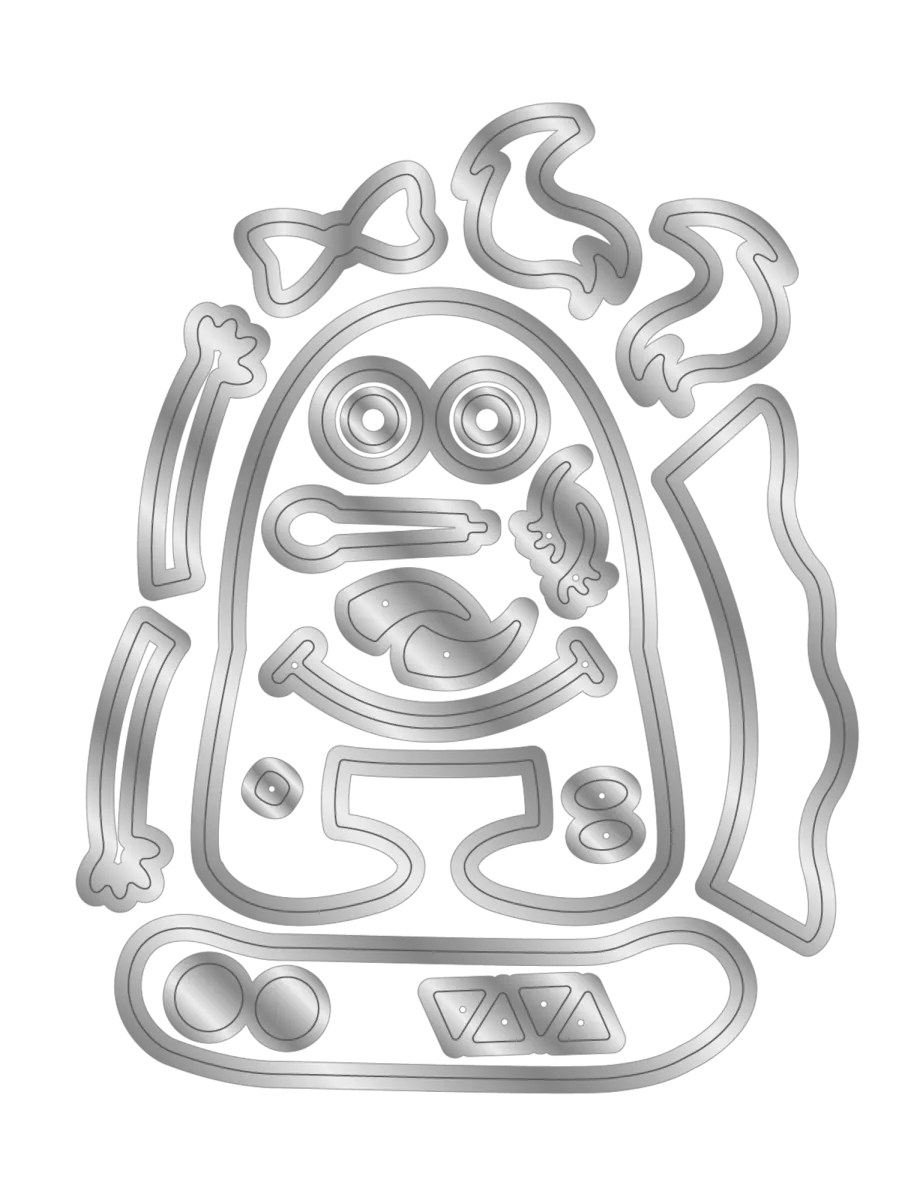 Missy das Monster ist überhaupt nicht gruselig! Dieses Metall-Stanzform-Set zeigt ein niedliches Alien auf einem Skateboard mit Zöpfen und ist perfekt für selbstgemachte Grußkarten, Geschenkboxen und mehr – ideal für das kleine Monster in deinem Leben. Das Stanzen verleiht ausgeschnittenen Motiven eine Feinheit, die du mit Schere oder Bastelmesser einfach nicht erreichen kannst.