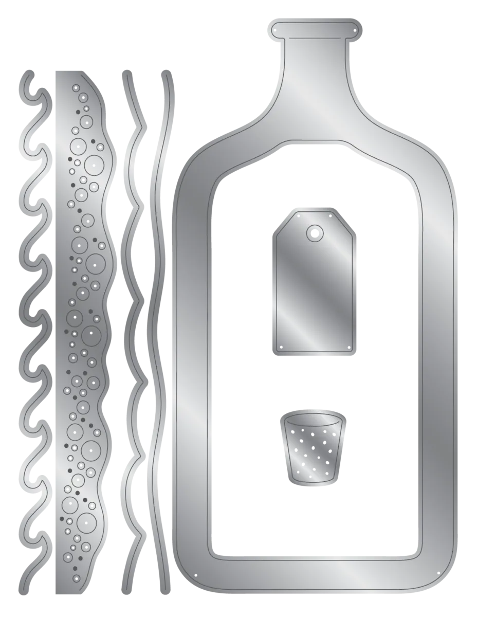 8 Metallstanzen und 1 Schablone zur Erstellung eines Vintage-Flaschendesigns