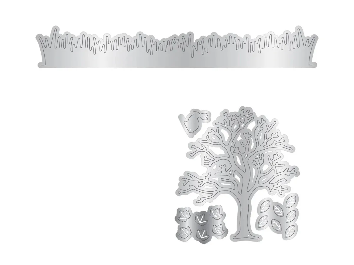 2-teiliges Metallstanzenset mit einem Edge’able für eine Graslandschaft und einer Baum-Stanze