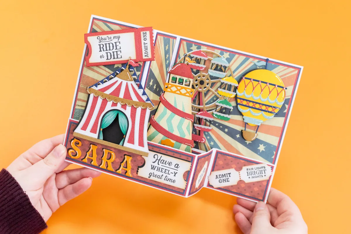 Tritt ein ins Zirkuszelt mit dem Big Top Stanzenset aus der Vintage Carnival Kollektion von Crafter’s Companion. Dieses Stanzenset enthält 10 Stanzen, mit denen du ein großes Zirkuszelt gestalten kannst – perfekt für deine nächste handgemachte Karte, Geschenkbox, Dekoration, Scrapbook-Seite und vieles mehr.