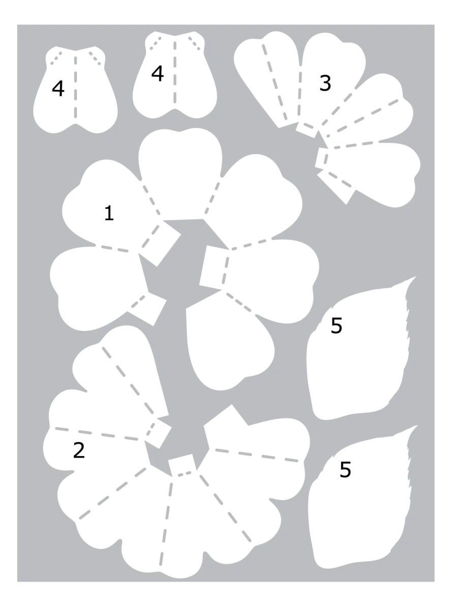 7-teiliger Vorlagensatz zum Ausschneiden und Zusammenbauen einer 3D-Rose