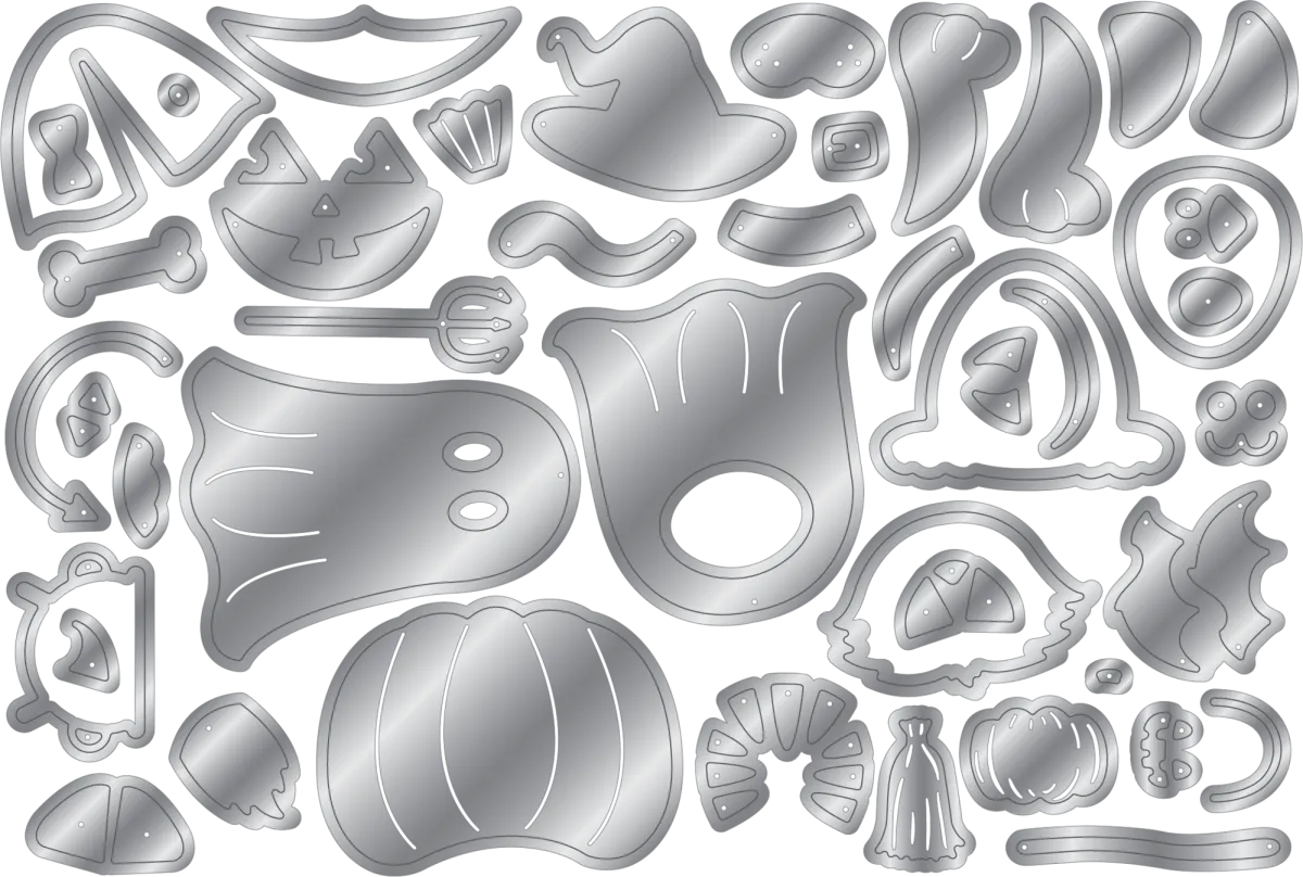 Dieses 60-teilige Set enthält Stanzschablonen, mit denen du deine Haustiere als klassische Halloween-Ikonen verkleiden kannst – zum Beispiel Vampumhänge, Fledermausflügel, Kürbisse und mehr. Passende Stempel erwecken alles mit den passenden Details und süßen Sprüchen zum Leben, während zwei Töpfe Flock realistische Textur zu deinen Kreationen hinzufügen.