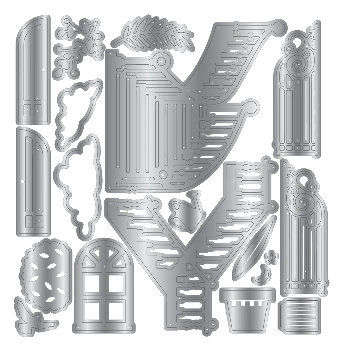 19 Stanzformen, 18 Stempel und 2 Schablonen, um Treppenszenen zu gestalten