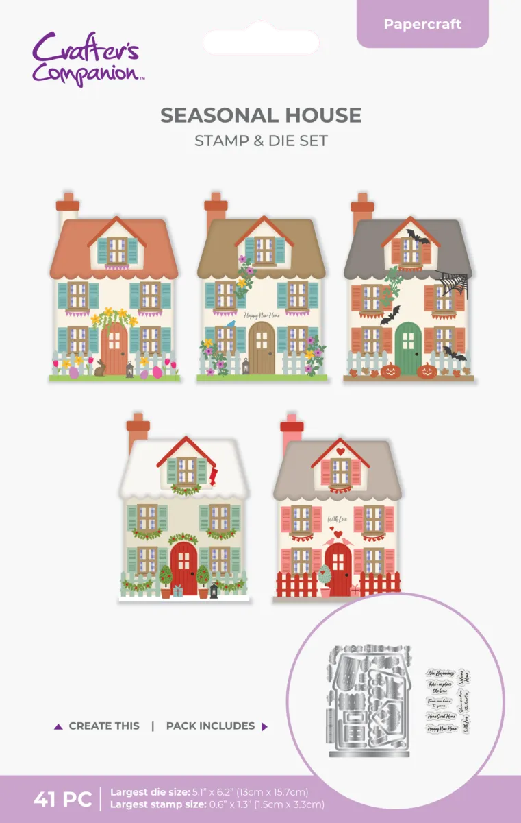 Es gibt keinen Ort wie das eigene Zuhause! Gestalte deine eigenen, charmanten Karten in Hausform und zaubere das ganze Jahr über ein Lächeln in Gesichter mit der Seasonal House Dies Kollektion. Diese bezaubernde Auswahl an Stempeln, Stanzformen und gemusterten Papieren verleiht selbstgemachten Karten ein einladendes und warmes Gefühl. Erstelle eine klassische Kartenbasis in Hausform, dekoriere sie passend zur Jahreszeit und verschicke sie an Familie und Freunde, um besondere Momente von Weihnachten und Halloween bis hin zum Einzug oder Hochzeiten zu feiern.