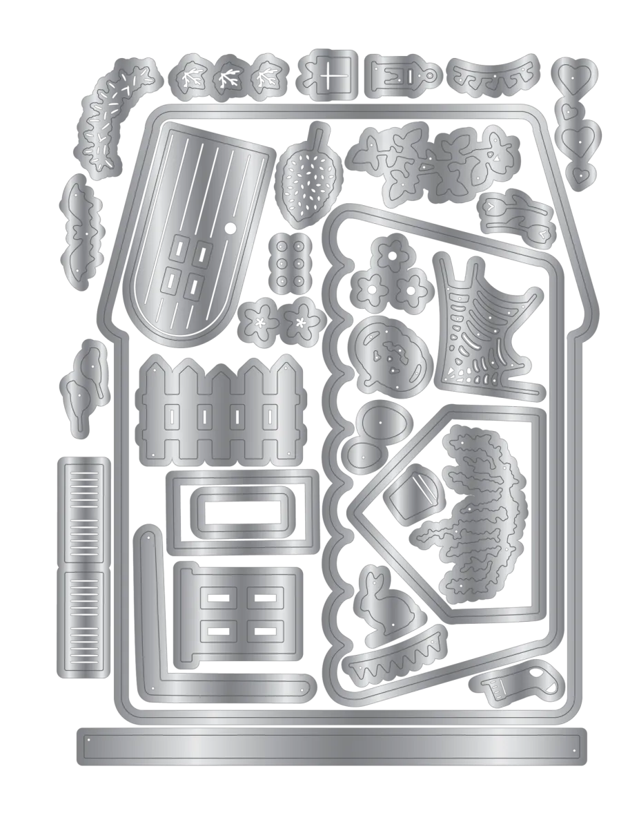 40-teiliges Stempel- und Stanzenset zur Erstellung einer Karte in Hausform