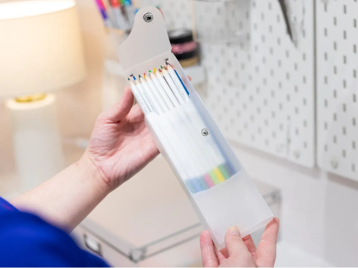 Schaffe dir den perfekten Bastelbereich mit dem Store It All - Organisations-Set. Dieses sechsteilige Set enthält alles, was du brauchst, um wichtige Bastelutensilien und Werkzeuge zu verstauen, während sie gleichzeitig griffbereit und leicht zu finden bleiben. Das Set umfasst eine große Aufbewahrungsbox und einen Zeitschriftenhalter, die beide groß genug sind, um bis zu 13 Papierblöcke im Format 30,5 cm x 30,5 cm aufzunehmen. Du erhältst außerdem einen Schreibtisch-Organizer, der Platz für bis zu sechs 30,5 cm x 30,5 cm Papiere bietet, sowie einen Briefhalter, der für Bastelpapier in den Größen 20,3 cm x 20,3 cm und 15,2 cm x 15,2 cm ausgelegt ist. Ein Stifthalter und ein Mäppchen sind ebenfalls enthalten, um Künstlerbedarf und Bastelwerkzeuge in Reichweite aufzubewahren. Das Set wird in einem großen Tragekoffer geliefert, damit du deinen Bastelplatz überall dort einrichten kannst, wo du gerade bist.