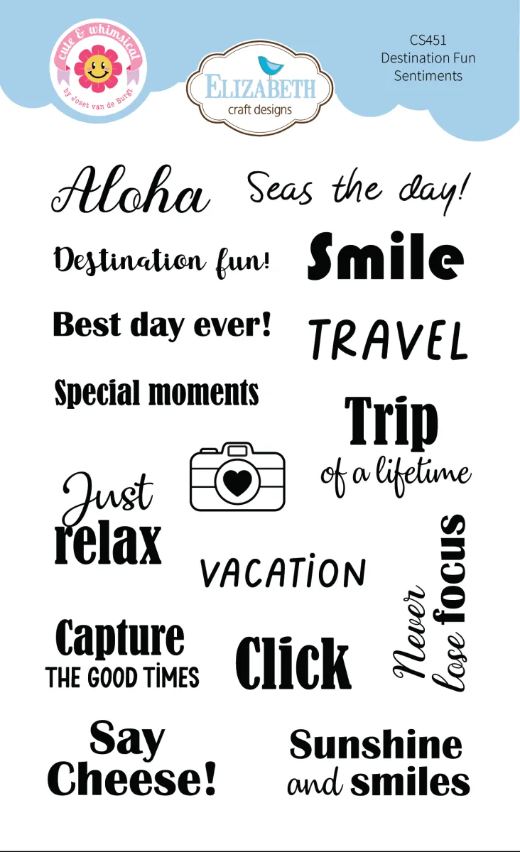 Das „Destination Fun Stamp“ Clear Stamp Set ist Teil der Destination Fun Kollektion von Cute & Whimsical.