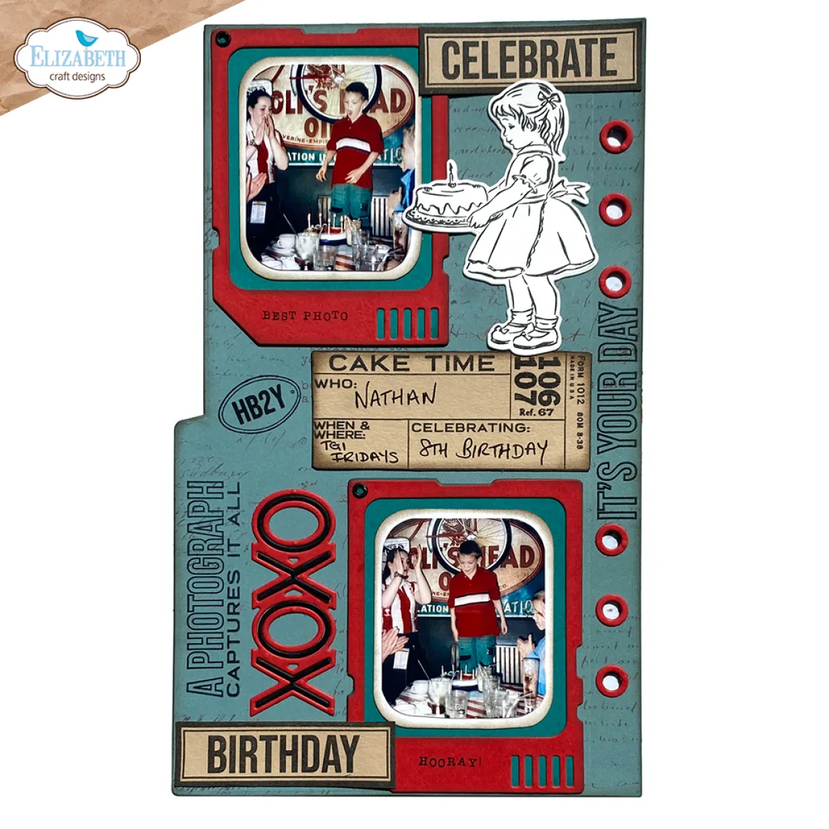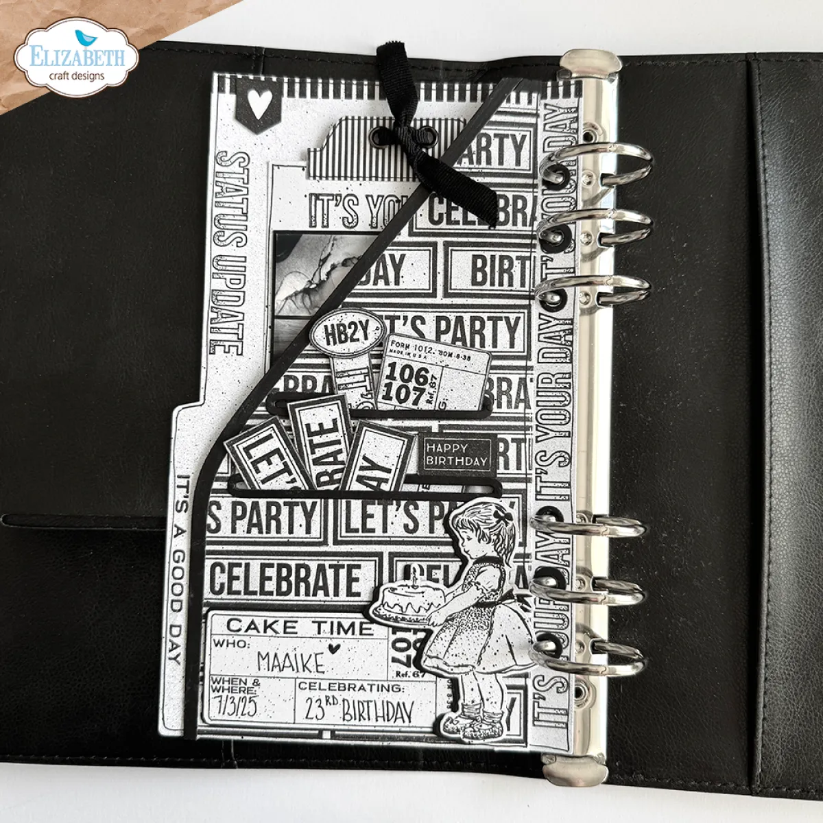 Dieses Set enthält ein kleines Mädchen, das einen Geburtstagskuchen hält, sowie eine passende Stanzform und verschiedene Stempel, um Geburtstage und Feierlichkeiten zu dokumentieren.