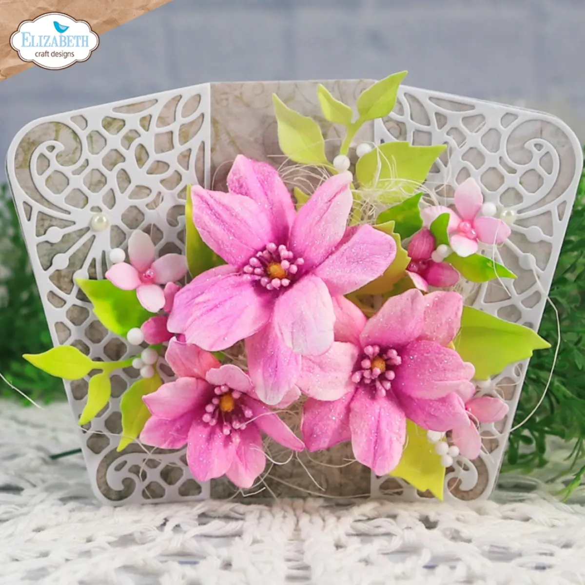 Das „Delicate Fancy Card Easel“ Stanzset ist Teil der Bohemian Rose Kollektion von Paper Flowers.
