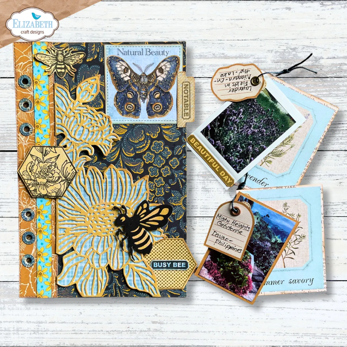 Dieses spaßige Set enthält ein großes dekoratives Element mit zwei Lagen, das verwendet werden kann, um eine Tasche auf deiner Basisseite zu gestalten, sowie Hexagone und eine Biene.