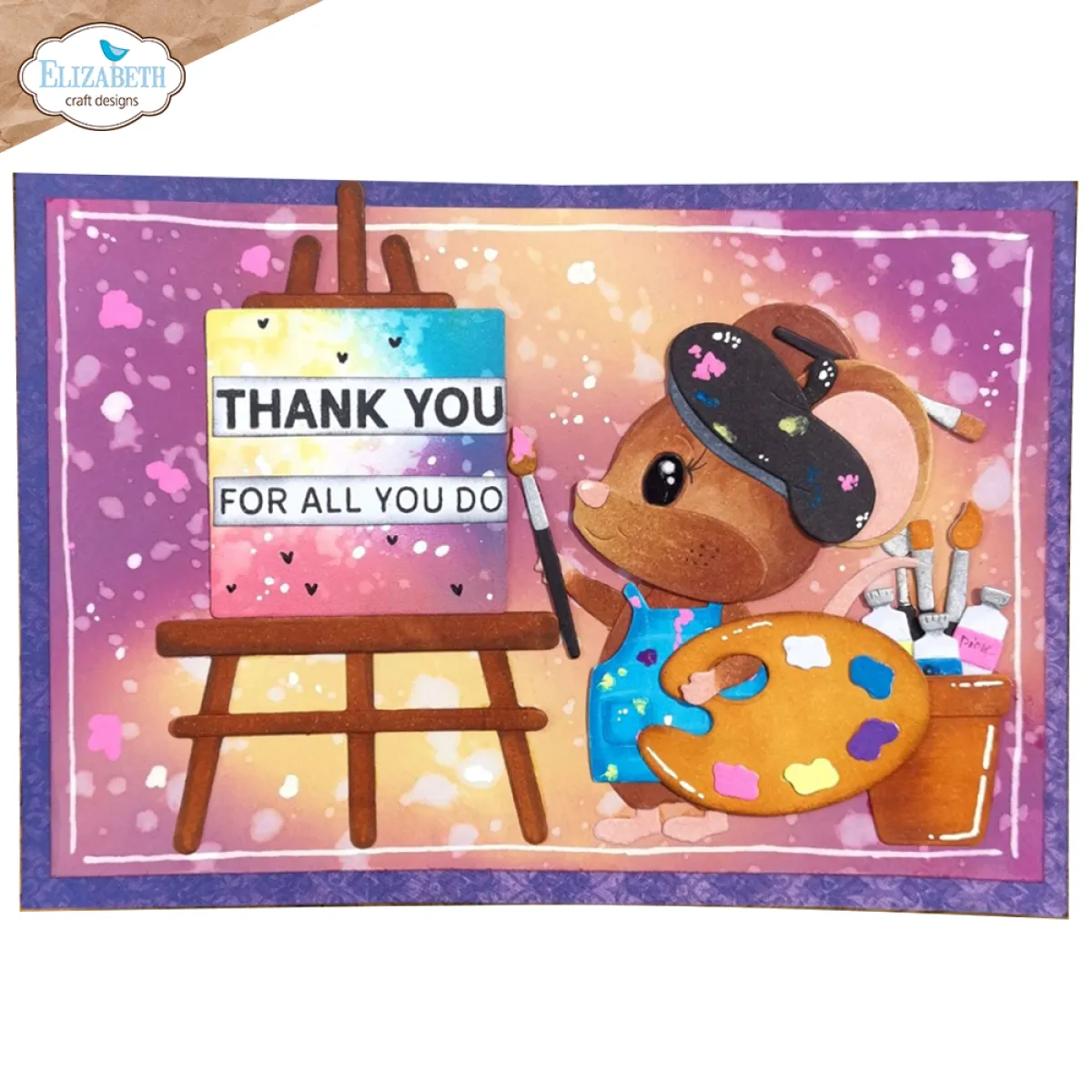 Das Set enthält eine Staffelei, Kunstutensilien und eine Schürze. Perfekt, um lustige, kunstbezogene Szenen mit deinen Mäusen zu gestalten.