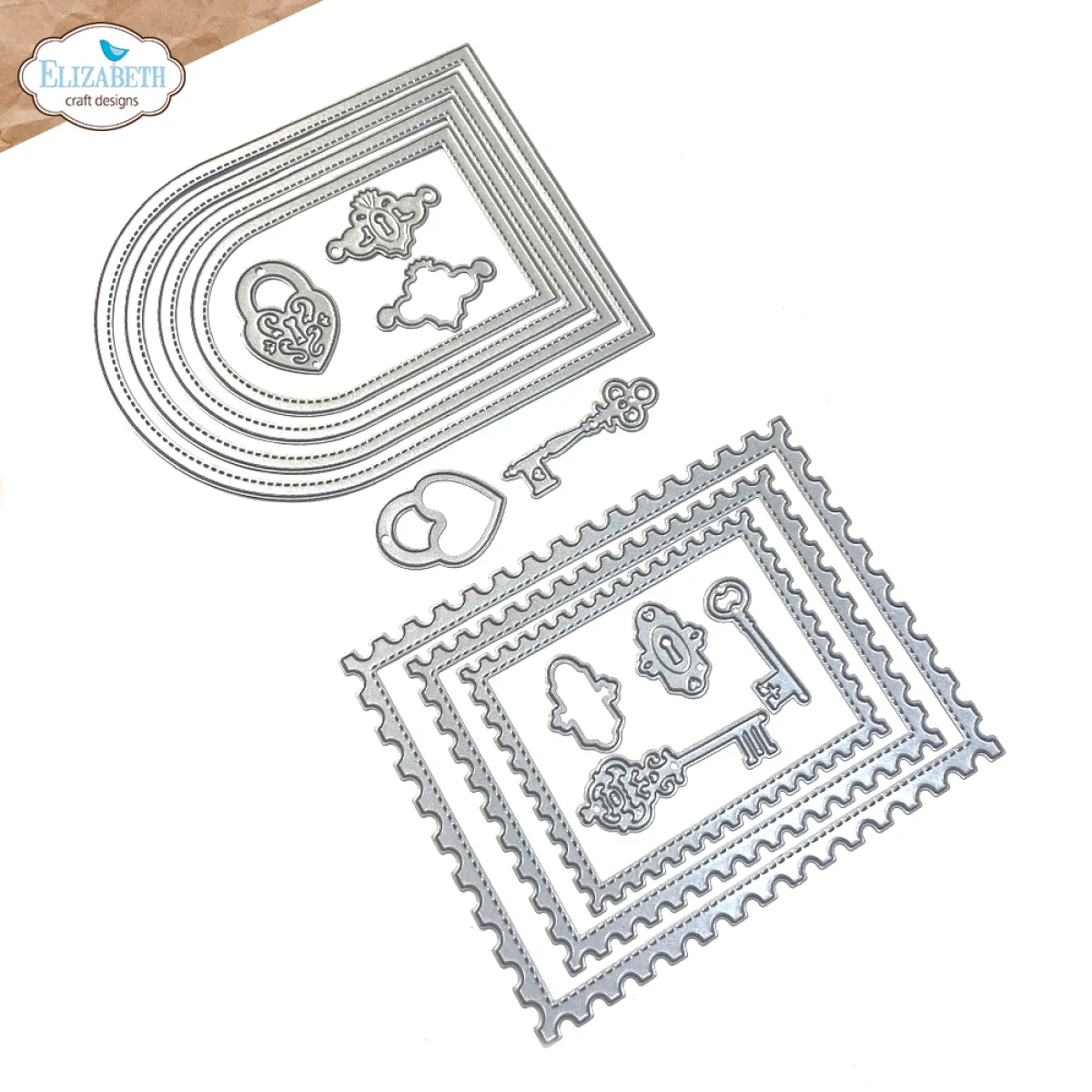Die Bögen- und Briefmarkenstanzen in diesem Set ermöglichen es dir, mehrschichtige Matten für Fokusbilder, kreative Kartenbasen oder Leporello-Bücher zu gestalten. Die dekorativen Schlüssel und Schlösser sind perfekt, um deinen Projekten einen vintage-inspirierten letzten Schliff zu verleihen.