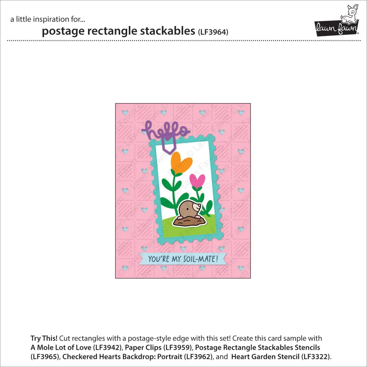 Diese Briefmarken-ähnlichen Stackables verleihen deinen Projekten ein verspieltes Detail! Kombiniere sie mit den Postage Rectangle Stackables Stencils, um das Maskieren des Inneren der Stackables kinderleicht zu machen.