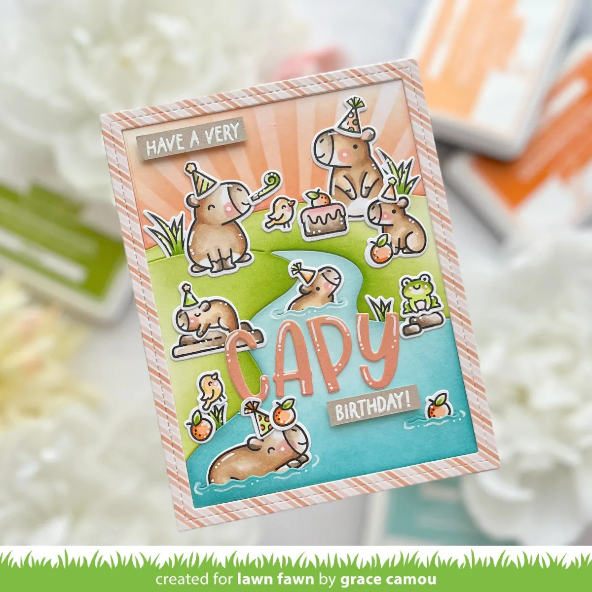 Passende Set-Ideen: Dieser Hintergrund ist perfekt für deine liebsten wasserliebenden Tierfreunde. Lade die knuffigen Tiere aus „Capybaras!“ und dem „Capybaras! Add-On“ zu einem Sonnenbad ein! Auch „Wood You Be Mine“, „So Dam Much“, „Toadally Awesome“ und „Swan Soiree“ passen hervorragend zu diesem Hintergrund!