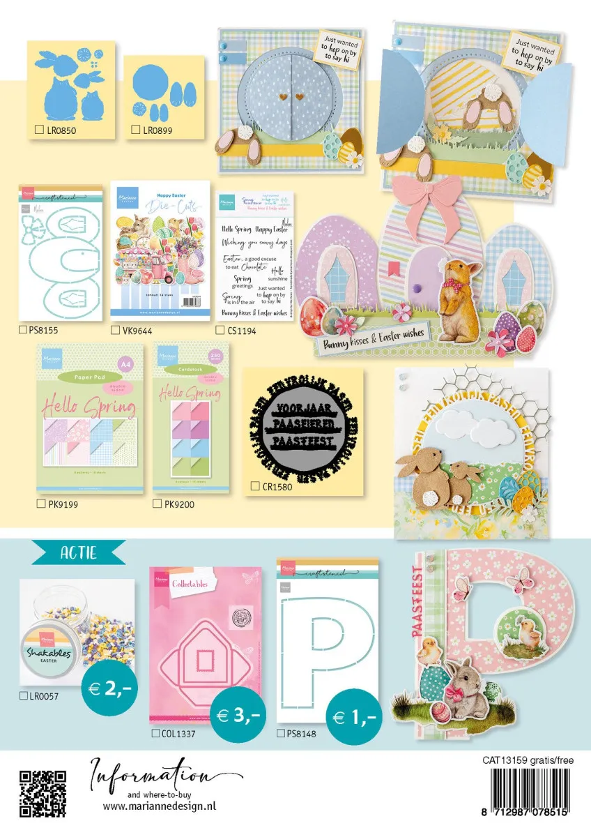 A4-Broschüre / Flyer mit einer Übersicht über die neue Kollektion Nr. 159 von Marianne Design. Aufklappbares Buch – Frühling – Peek-a-boo. März 2026. 1 Stück.