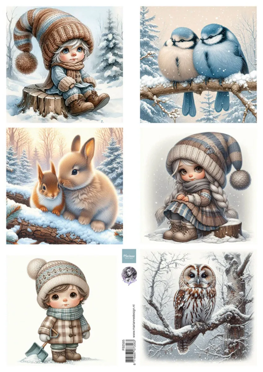 Decoupage. Dreamy Winter von Fairybells. Schneide die Motive aus oder verwende sie als Ganzes für deine Projekte. A4, 6 Motive, unbeschichtetes Papier.