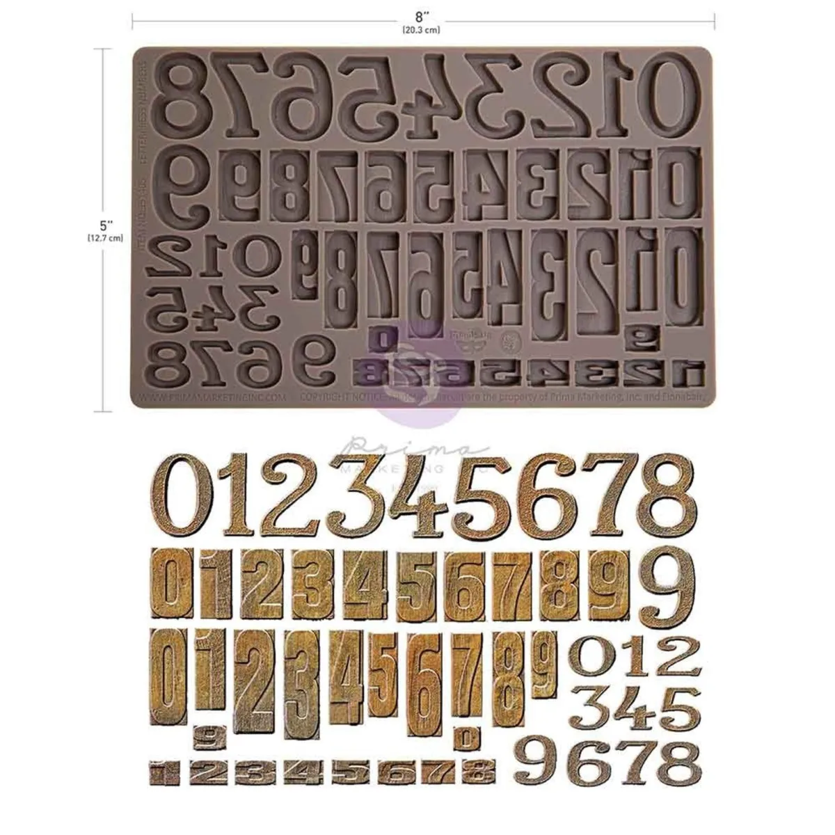 1 Stück, 12,7 x 20,3 x 0,8 cm – Finnabair Decor Mould – Letterpress Numbers.
